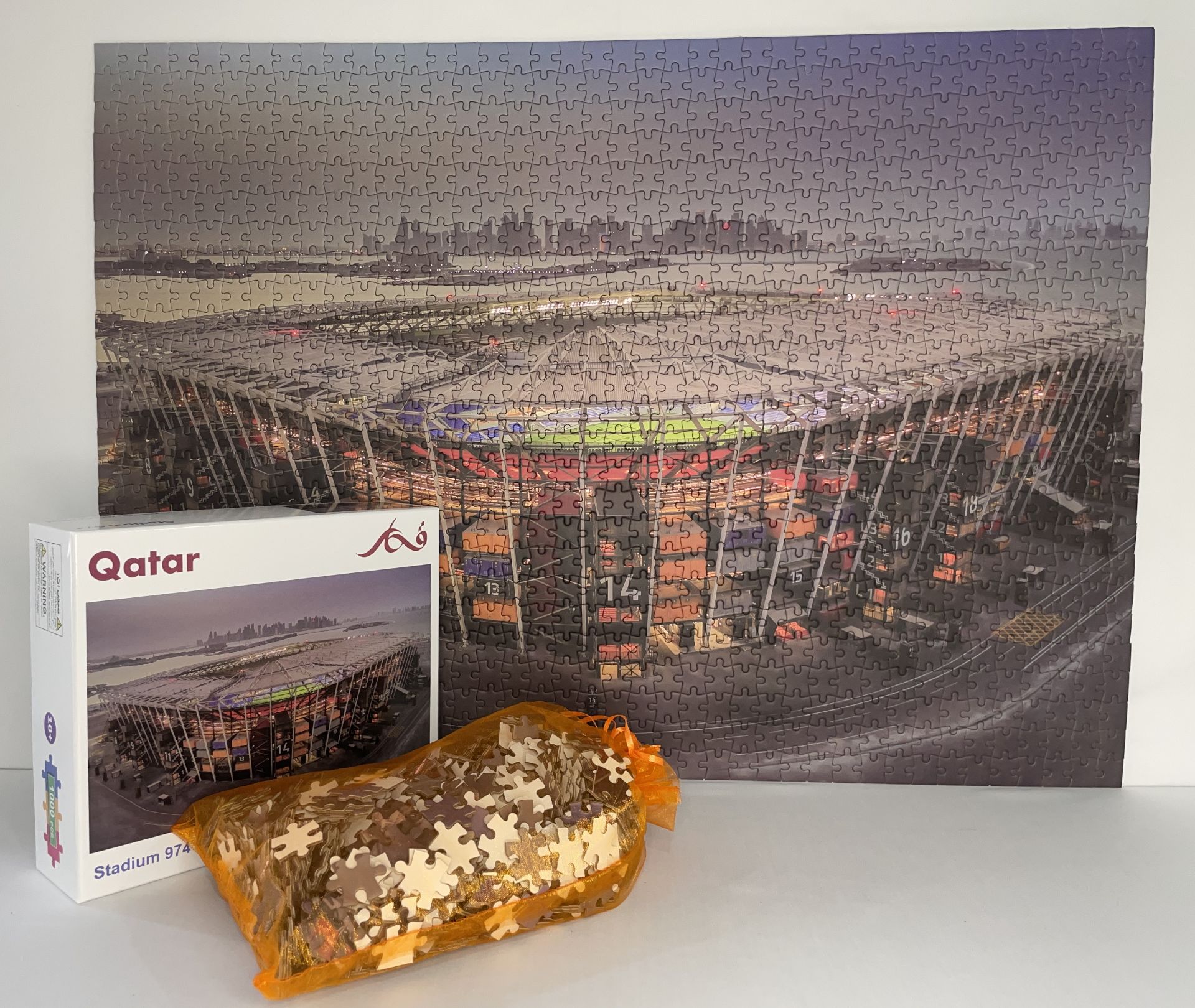 التعبئة والتغليف: تأتي اللعبة في علبة جذابة تحتوي على صورة مكتملة للغز مع وصف مختصر لملعب 974. مما يجعلها هدية ممتازة أو عنصرًا قابلاً للتحصيل لعشاق كأس العالم أو عشاق العمارة.