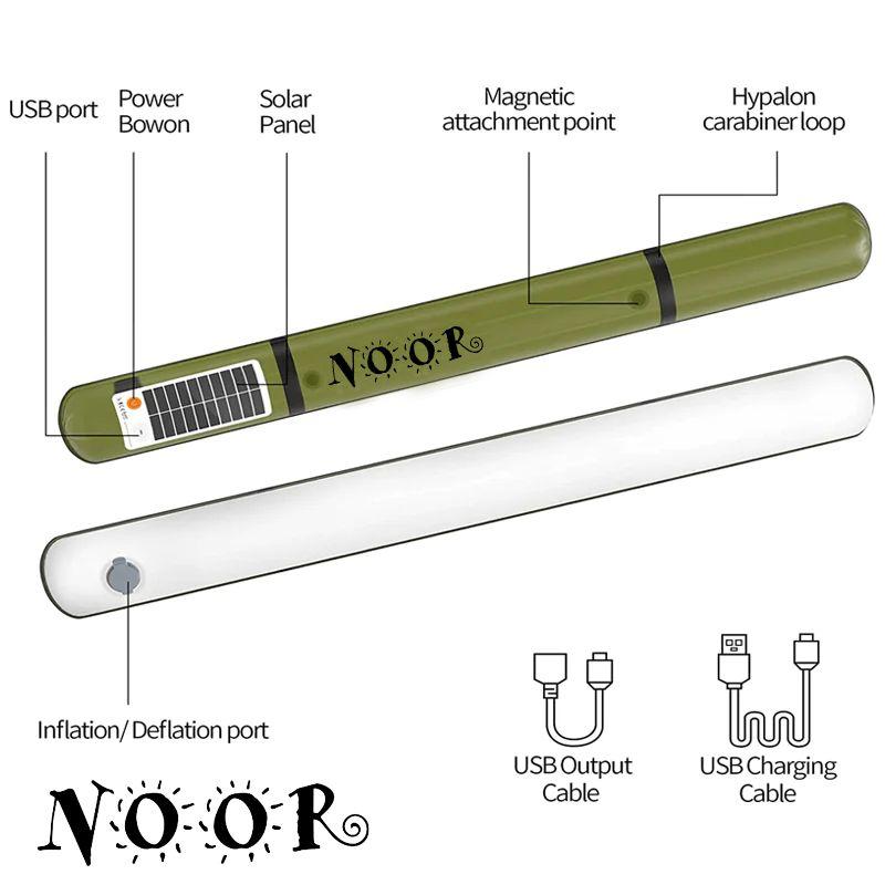 The NOOR Inflatable LED Light is a versatile, eco-friendly lighting solution perfect for outdoor adventures, emergency preparedness, and everyday use. Designed to be lightweight and inflatable, this LED light is easy to carry, store, and deploy whenever needed. With solar-powered charging, it provides bright, energy-efficient illumination without the need for batteries or electricity.