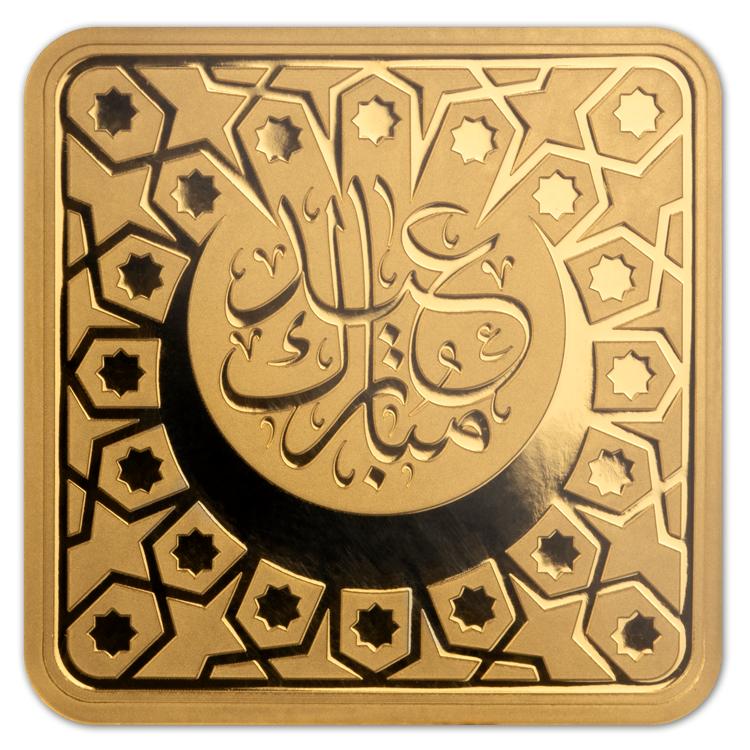 احتفالاً بعيد الفطر المبارك وتعبيراً عن انتهاء الشهر الكريم تم اصدار هذه العملة الذهبية التذكارية،