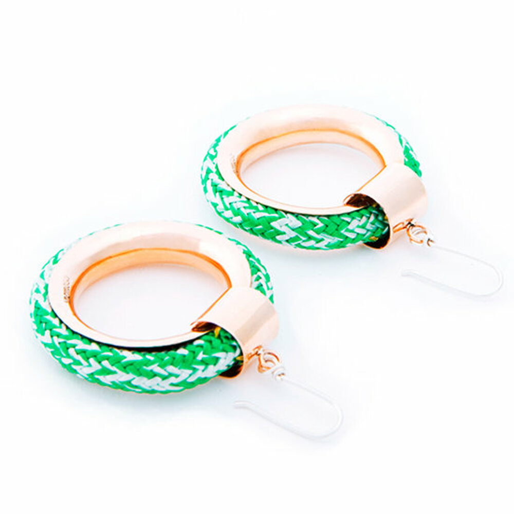 Çiğdem Serdaroğlu tarafından AnemosS koleksiyonu için özel tasarlanmış Marin kadın küpe. Küpe halkası teninize temas ettiği için 925 ayar gümüştür. Halat; yeşil renklidir ve metal malzemesi bronzdur. Günlük hayatınızda basic parçalar ile kullanabileceğiniz gibi plaj kıyafetleriniz ile birlikte de kullanabilirsiniz. Özel tasarım hediye kutusu ile birlikte gönderilmektedir. Böylece hediye etmek içinde iyi bir alternatif olacaktır. Krem, parfüm, alkol, çamaşır suyu gibi maddeler ile temasından kaçınılmalıdır. Ege esintilerinden ilham alınarak oluşturulan AnemosS koleksiyonu tüm deniz tutkunları için tasarlanmıştır.