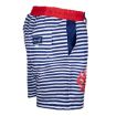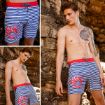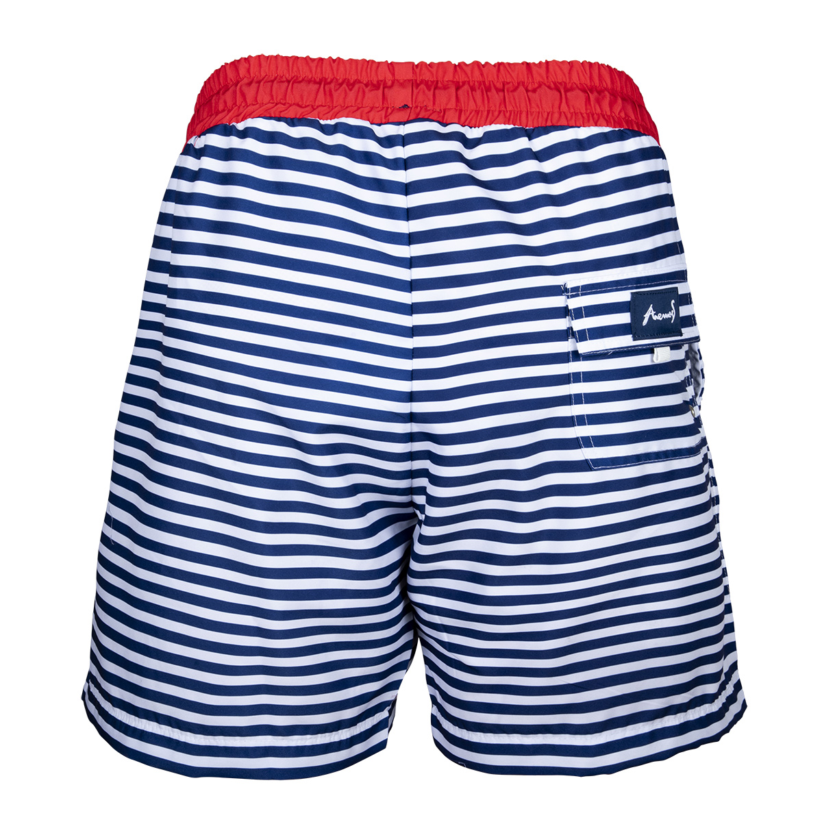 This mens swimwear has a shrimp design with marine inspired colors and a proper finish.