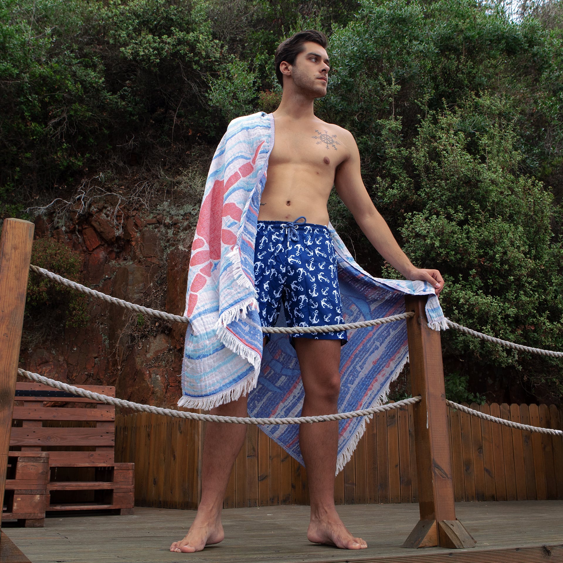 SPECIALLY DESIGN: AnemosS Crab Patterned Peshtemal bears the traces of quality with its soft texture as well as its liveliness felt in the maritime theme. It is designed for those who want to emphasize the summer theme in beach style. Peshtemal, enriched with crab, anchor, sail and fish patterns, which we feature abundantly in our summer collections, are suitable for multi-purpose uses.