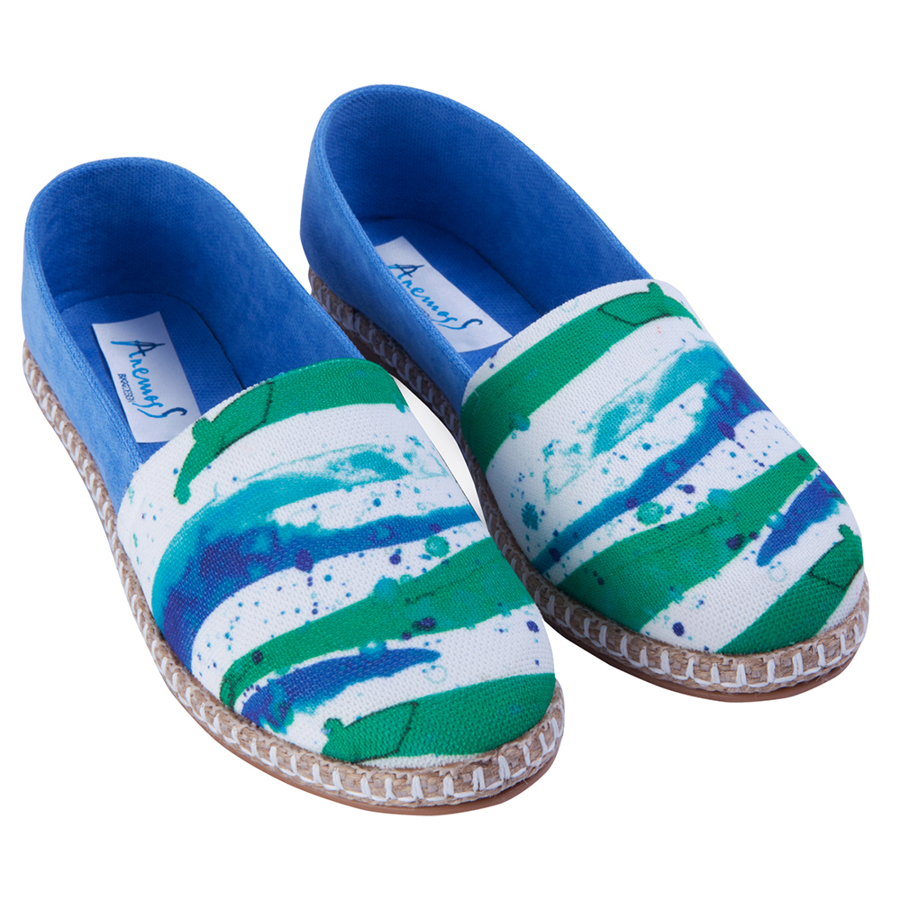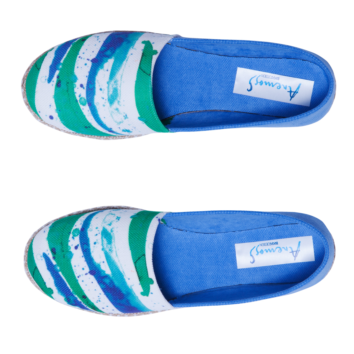 100% linen Wire Mesh - Thermo base.The upper part is completely made of linen fabric. The bottom of the shoe is a wicker and thermo base. You will be very comfortable withBiggDesign shoes which is one of the indispensable parts of the airport with its air space structure. You'll be very stylish with a white color and blue and green wave patterns. You can combine with other parts of the collection. Wave Beach Dress, shorts, t-shirts, such as products can examine. Inspired by the Aegean breezes, the collection is designed for all sea lovers.