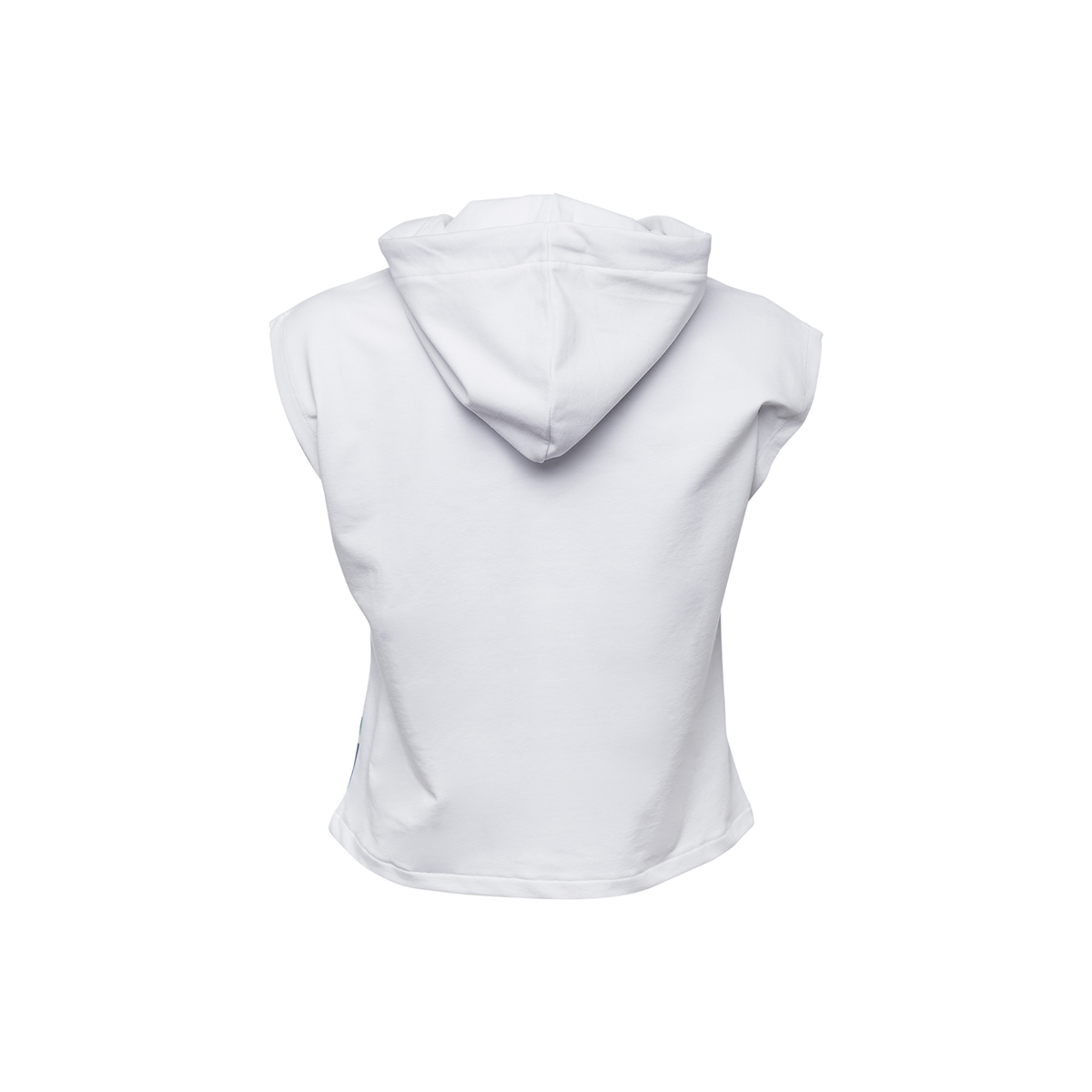 The broken white hoodie tank, a must-have for spring and summer, adds elegance to your sporty style. With its special artist design inspired by the sea and marine themes, this hoodie tank enhances your sporty activities and can be worn for walks along the beach or picnics with friends, pairing well with your shorts for a stylish and cool look. It's also versatile for all seasons, making it a potential favorite when paired with a denim jacket in cooler weather.