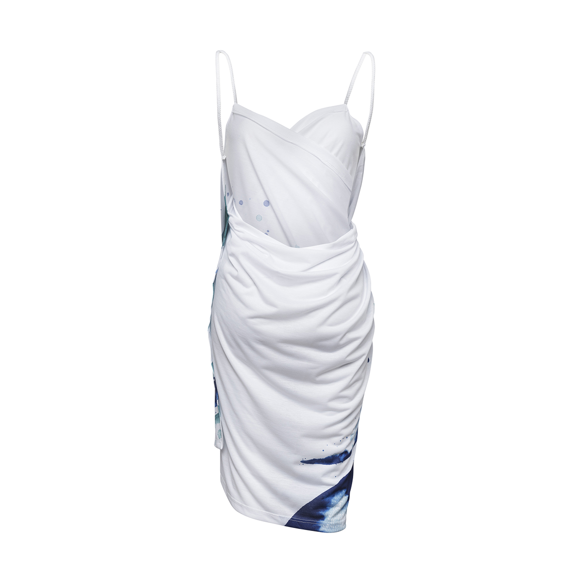 CUT&DESIGN: This dress slips on easily and looks glamorous. It has a lovely natural shape. The cotton fabric feels really light and the shape is fitted without clinging to the body. It has an open back. The light colour looks best with a bit of a tan and how cute are the crab details?