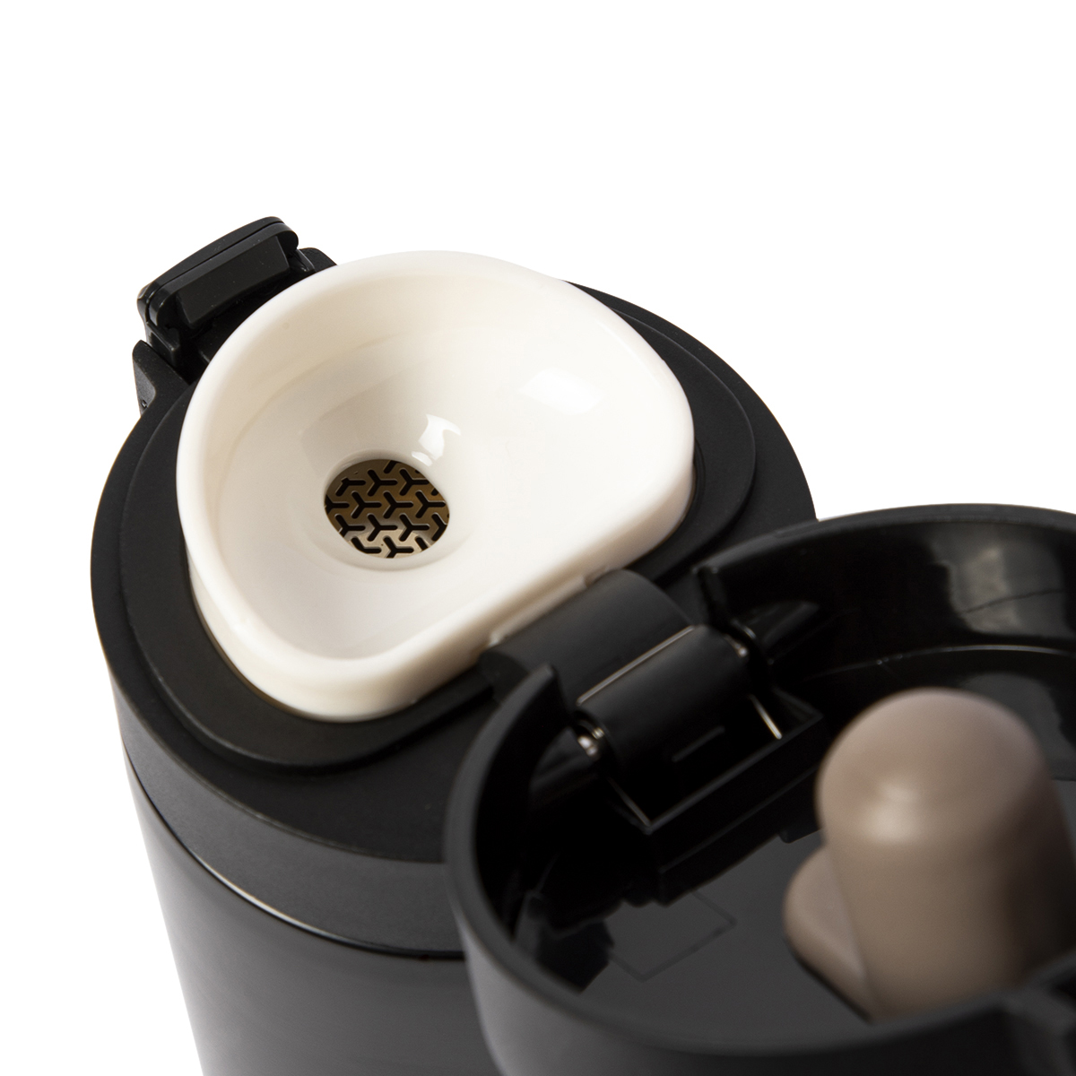 The vacuum-insulated, double-layer construction ensures that the temperature of your drinks remains stable for long periods. The mug’s design ensures that it doesn't transfer heat to the exterior, so you can handle it safely even when it’s filled with hot beverages. The leak-proof snap-seal lid is equipped with a button mechanism, ensuring that it is 100% spill-proof. It also has a filter made of 304 stainless steel to hold tea bags or loose leaf tea, ensuring convenience during use.