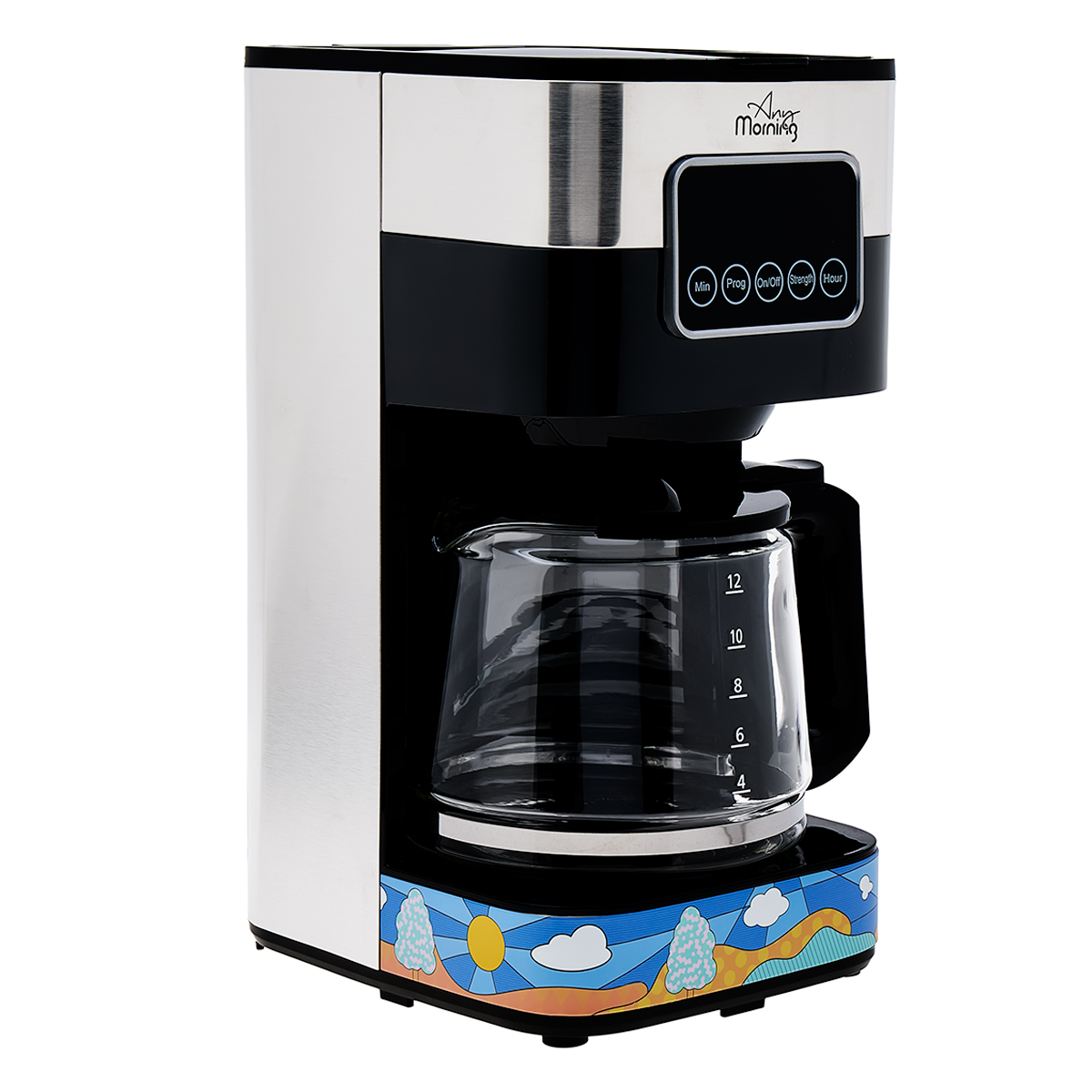 The Any Morning SH21615S Filter Coffee Machine offers features to elevate your coffee enjoyment. With a 1.5-liter water capacity, you can prepare up to 10 cups of coffee. Thanks to the LCD touch control panel, you can easily adjust all settings and clearly monitor the brewing time and power level of your coffee.