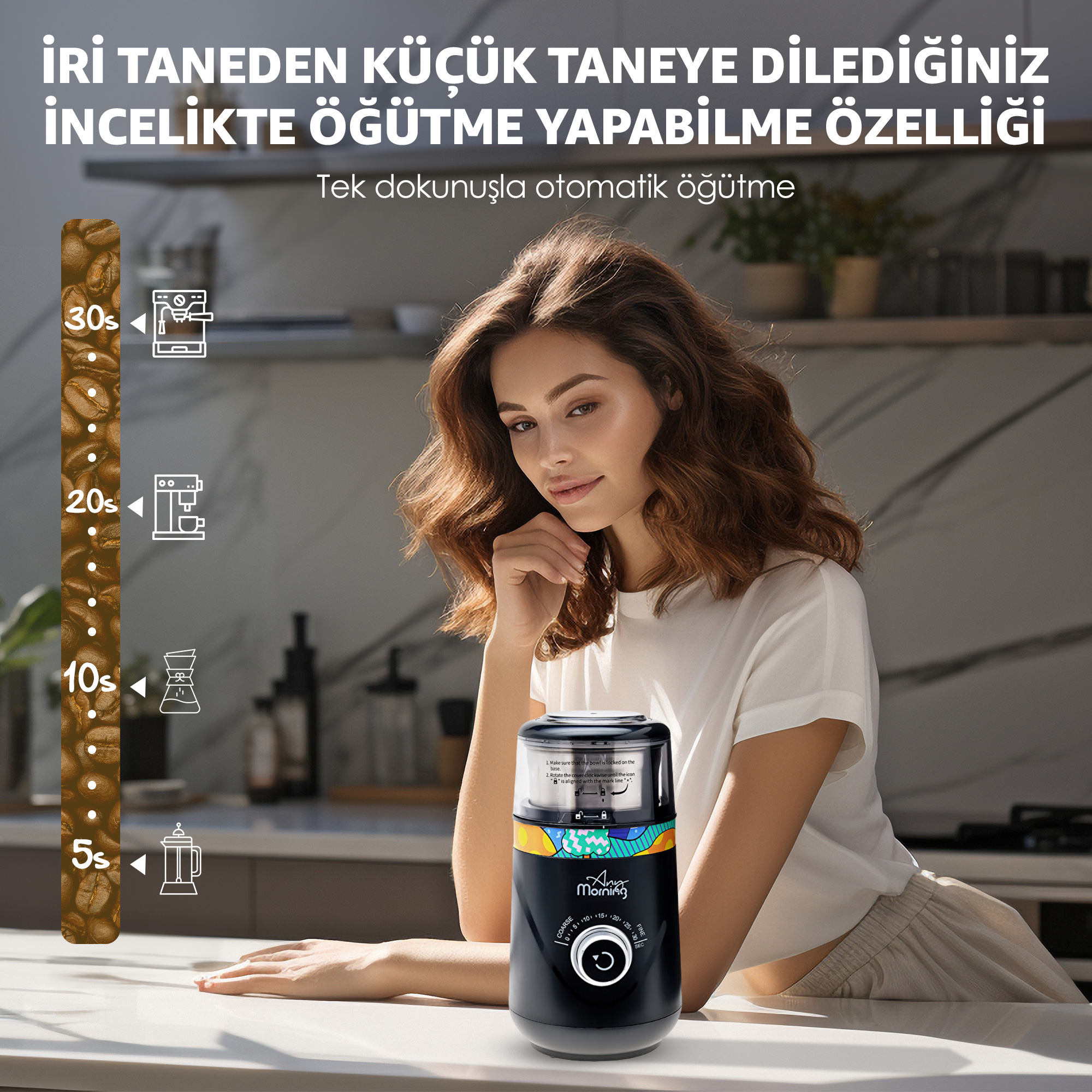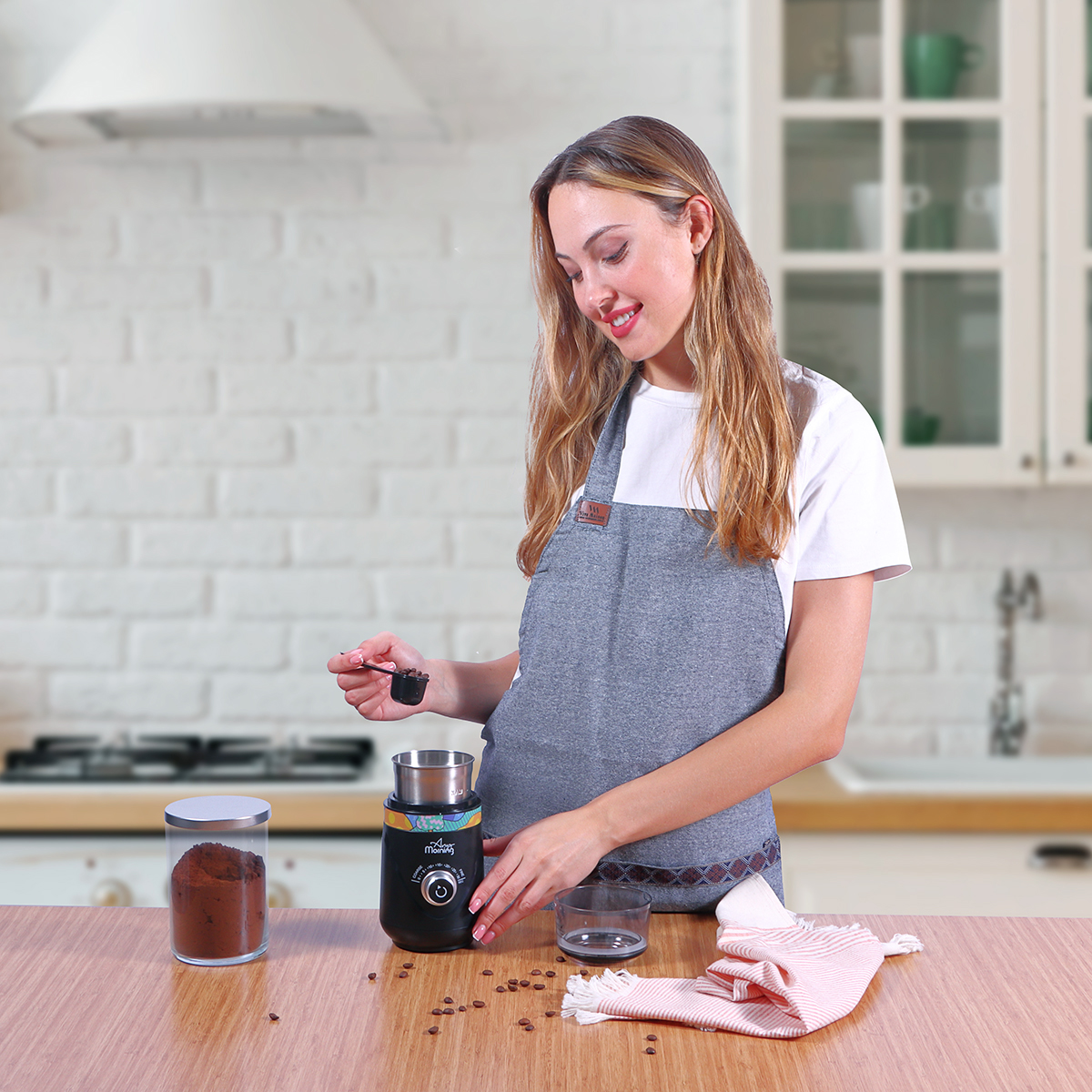With a 150-Watt motor and a noise level of just 63 dB, you can grind coffee quietly without disturbing your surroundings. The 70-gram capacity allows you to grind enough coffee beans to prepare 10 cups of fresh coffee in one go.