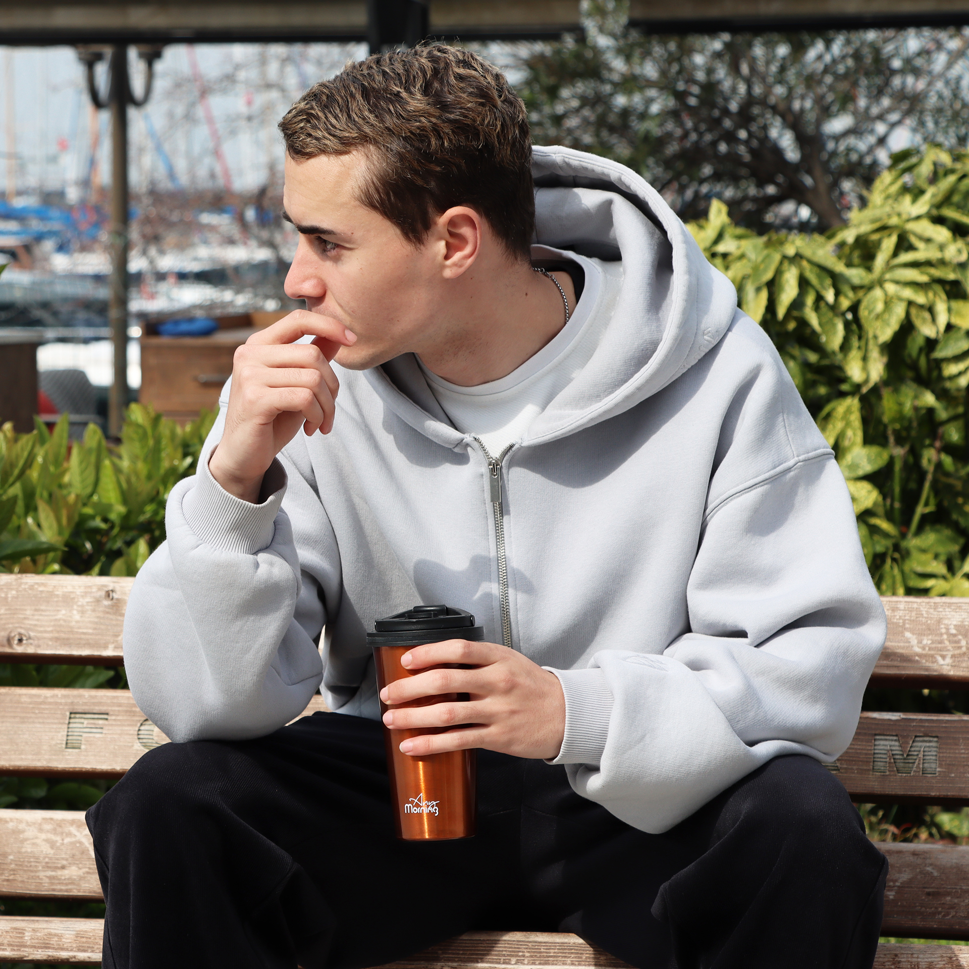 ERGONOMIC AND STYLISH: Cup’s bottom has a silicone pad, which holds on the surface perfectly and make the product anti-skid. Lockable mouthpiece opens and closes easily. The eye-catching copper colored thermos mug’s dimensions are suitable for cup holders in automobiles.