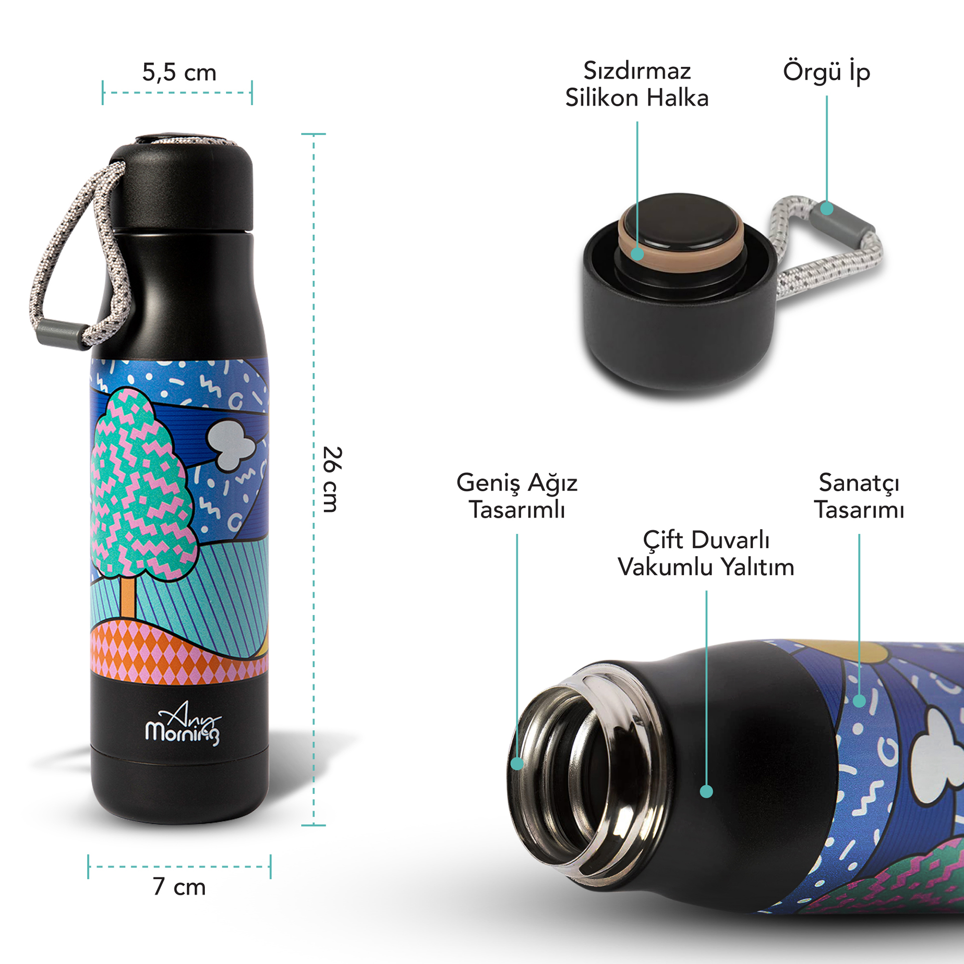 Thanks to the vacuum insulation technology, this thermos mug can keep your beverages cold for 12 hours and hot for 8 hours. Its ergonomic design, carrying ring, and non-slip base make it extremely user-friendly and easy to use. The leak-proof screw lid ensures your drinks are securely stored. Its BPA-free structure offers a healthy usage option and is environmentally friendly. This thermos is a perfect choice for both your travels and daily use. With its sturdy construction and stylish design, it ensures you can carry your drinks safely in any condition. It is highly practical to use and easy to maintain, with hand washing recommended.