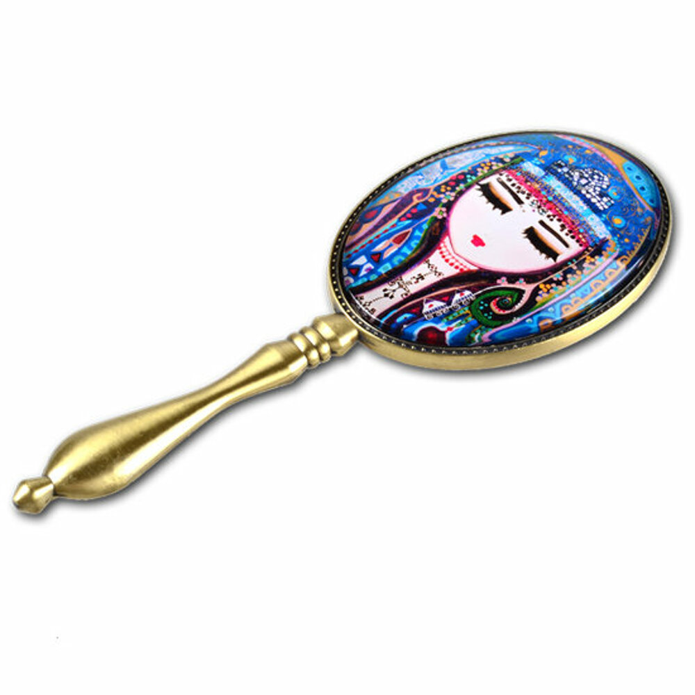 Ideal for both decorative use and carrying in a bag and as a make-up mirror, Biggdesign Authentic Female Patterned Decorative Hand Mirror stands out with its colorful design.It gives the clearest appearance providing a smooth reflection without distortion with its first-class glass mirror. Handy and lightweight with its compact design, it also is the ideal size to put in the bag. When you want to check your makeup, freshen your lipstick, fix your hair, the handle provides an easy and comfortable grip. This makes it a great option as a gift for your friends who love make up or who like to include artistic details in their decoration, thanks to its dominance on blue color.Biggdesign Authentic Female Patterned Decorative Hand Mirror, carries one of the special works of the famous painter Canan Berber and attracts great attention with her paintings featuring Hittite brides, captures the eye with its fine details. With the Hittite bride pattern made of curved glass, you can achieve a decorative look by using the mirror on the nightstand in your bedroom, on the console in the doorway or on the coffee tables in the hall.