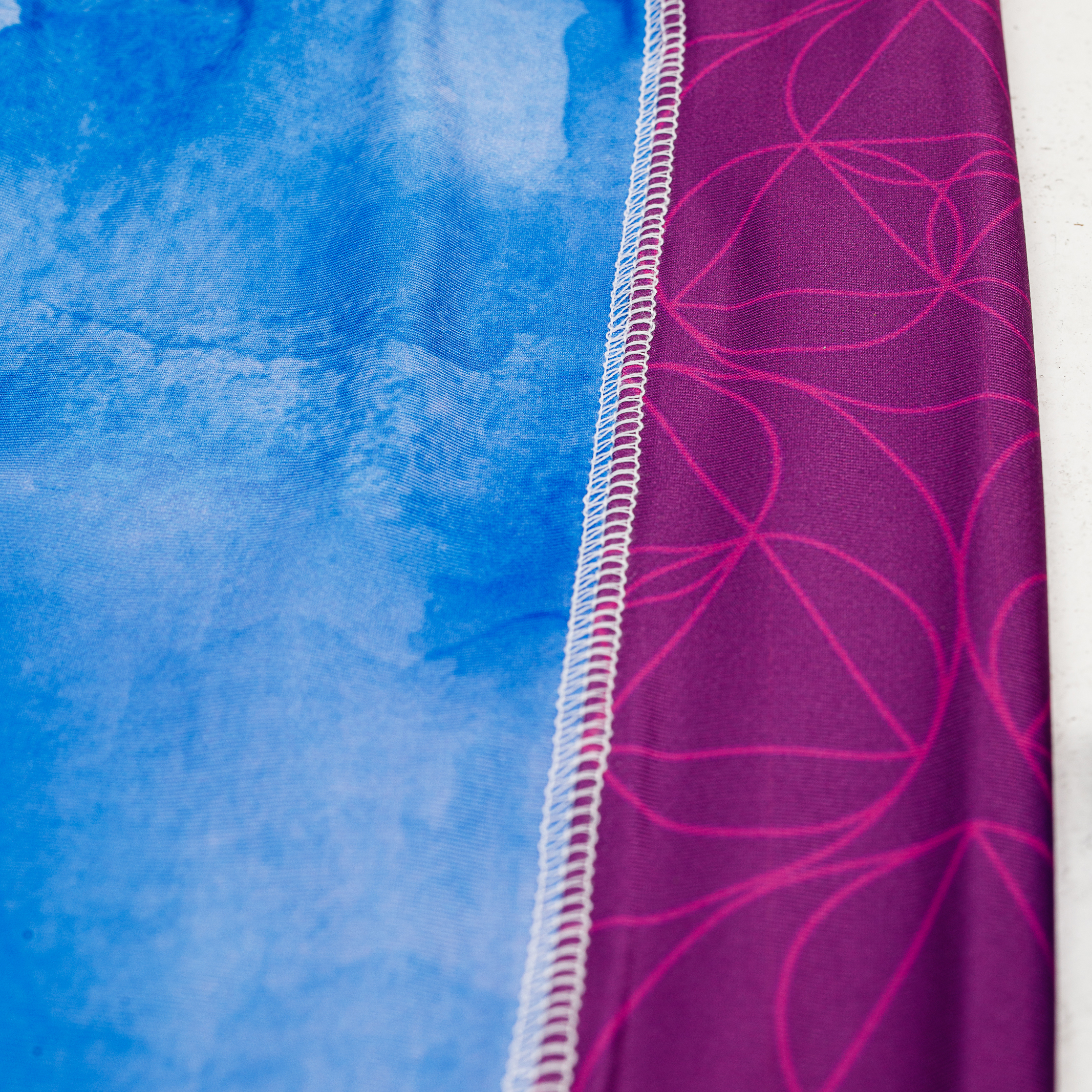 There are Karma patterns on the tights with the mixture of the colors of pink, purple and blue. It is designed by BiggDesign Designers to bring comfort in your daily activies and to your style.