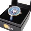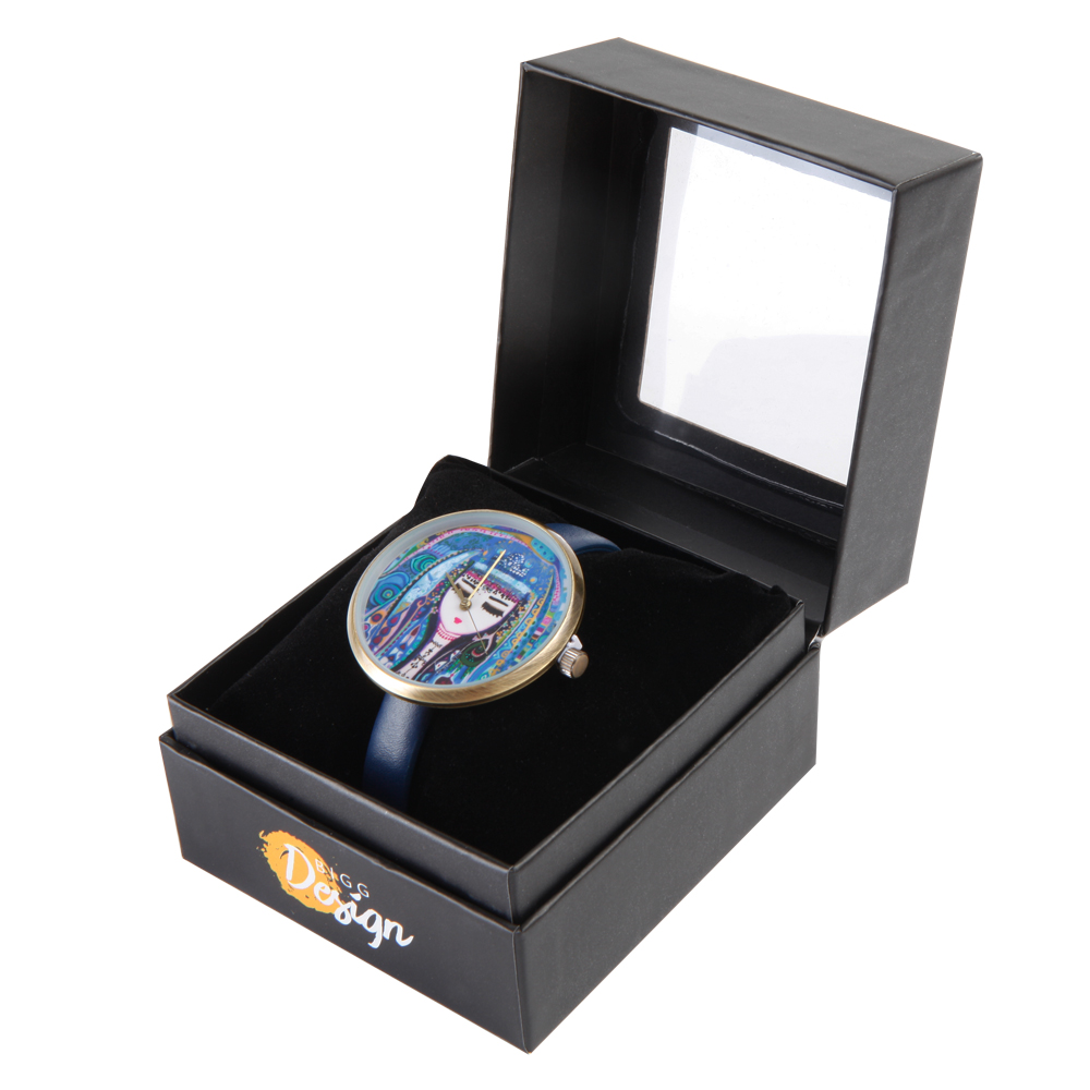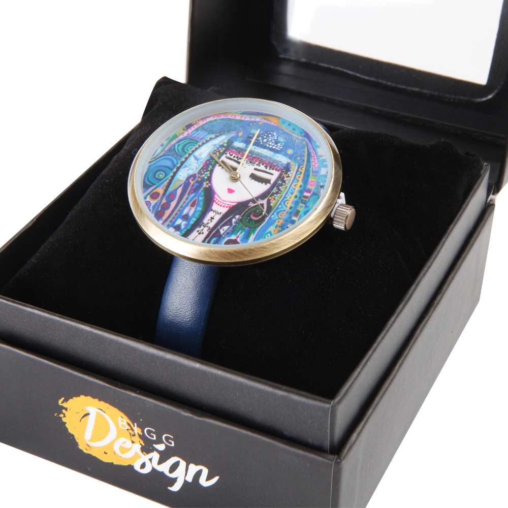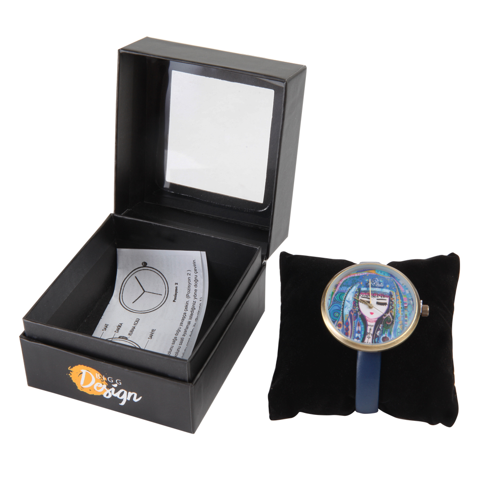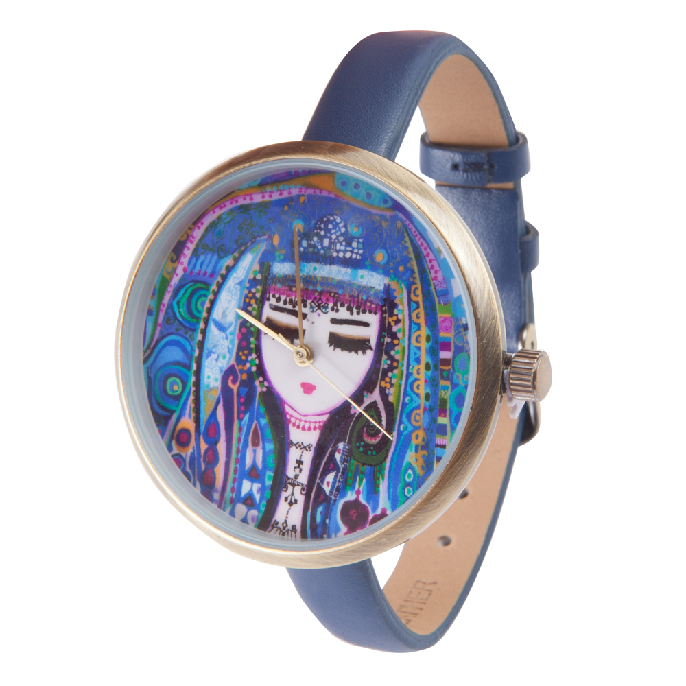The "Blue Water" custom design work of the artist Canan Berber is applied on the wrist watch The battery is activated when the plastic between the pin and the watch is removed. Japanese battery. 100% Leather strap. Stainless steel back case. Light bronze metal alloy front cover. Japanese movement, 3 ATM water resistant. Diameter: 4 cm, Weight: 30 g, Belt length is 22 cm excluding the buckle.