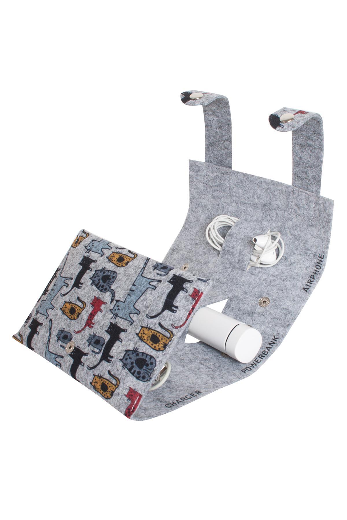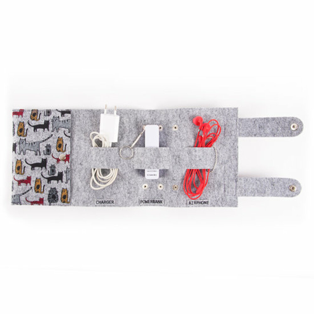 You can organize your phone accessories such as charger, headphone and powerbank. It is made of felt material.
