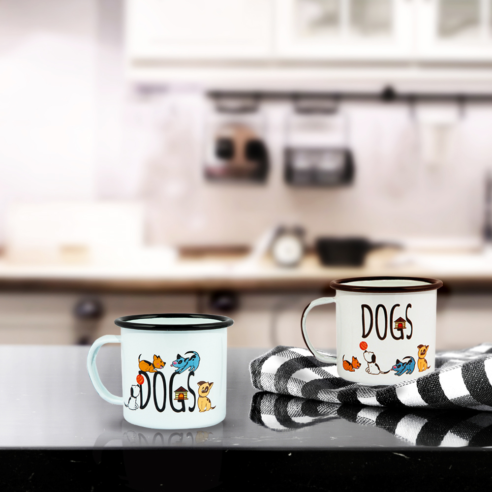 Biggdesign Mugs Set which is made of high-quality enamel covered steel and attracts all the attention with its colorful design, is an excellent option especially for animal lovers with its Dogs pattern design.