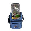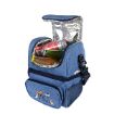 DIMENSIONS: This small picnic backpack has a height of 11 in, a depth of 7 in, a width of 5 in. It has a wide zipper open design to put your lunch containers into the bag or taken out of the bag vertically to prevent any possible leaking out