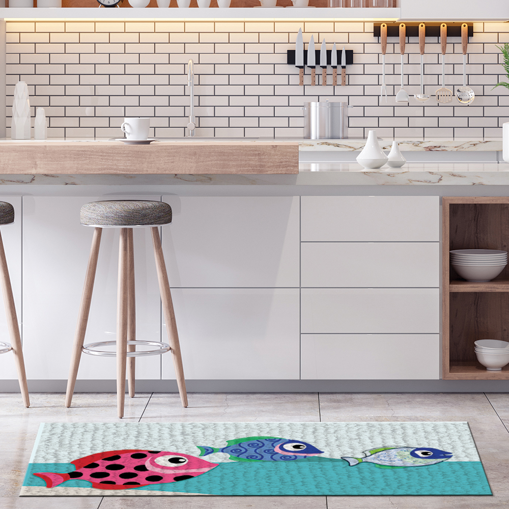 FABRIC AND CARE: Biggdesign Fertility Fishes Rug is made of durable polyester. It is sturdy and easy to clean. Dimensions: 23 x 51 in. Pile height: 0.3 in, you can wash in the washing machine at 30 degrees sensitive washing program