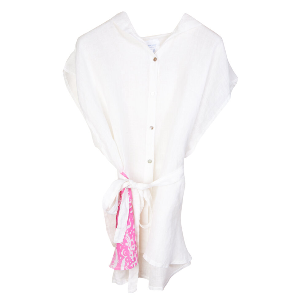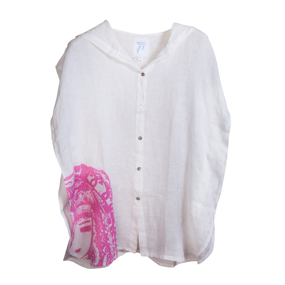 Based on the licensed works of the painter Canan Berber, we have designed useful, modern products from life for you. Made of 100% Linen fabric. Pink accents on white color that will suit any combination. It should be tied with a short and waist belt. Our collection protects you from evil eyes with the theme "Mashallah" 41 times ...