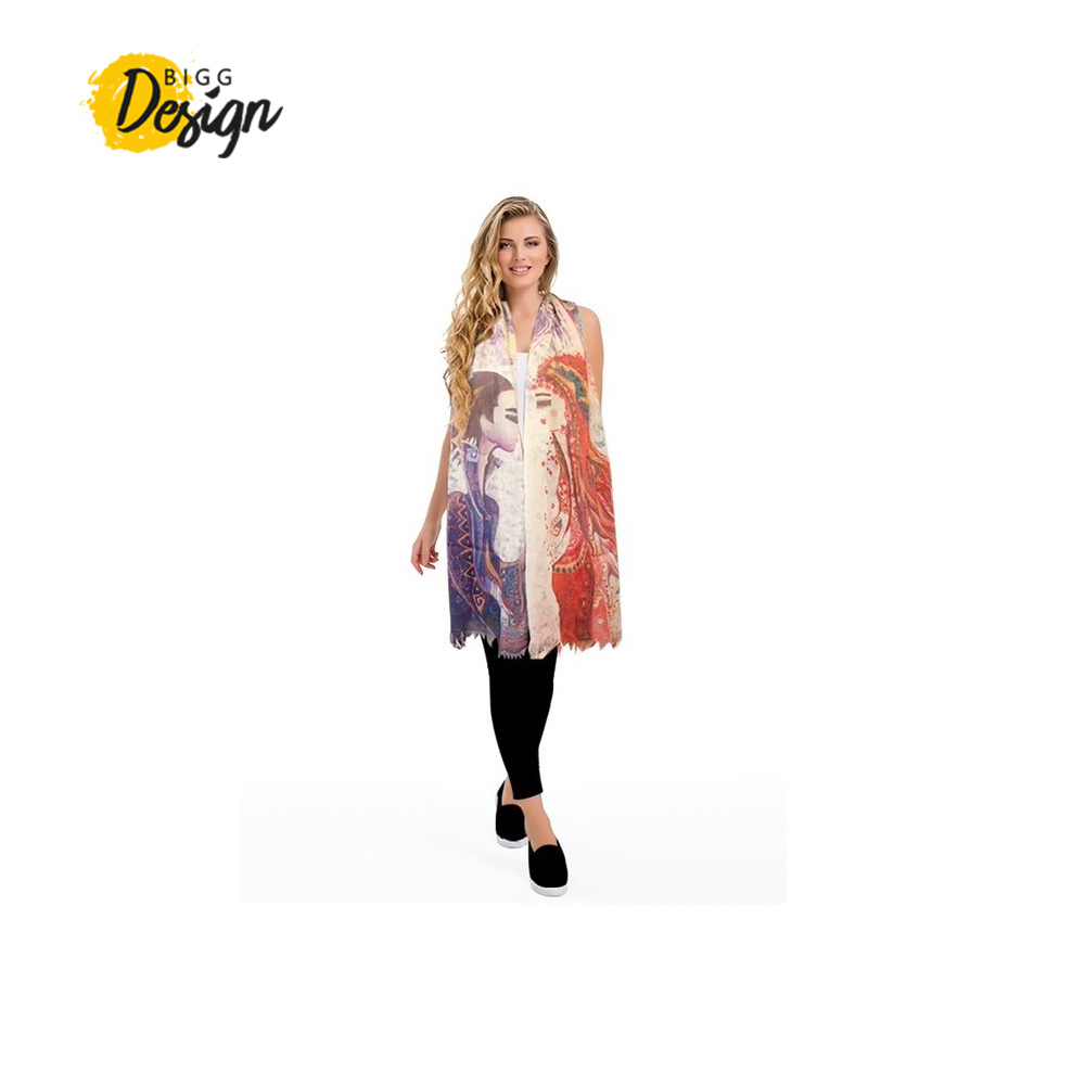 The special design shawlin which modern lines meet blue patterns complements your elegance for all seasons.  When you don't want to wear jewelry, BiggDesign Love Shawl By Canan Berber will be perfect savior for your day.