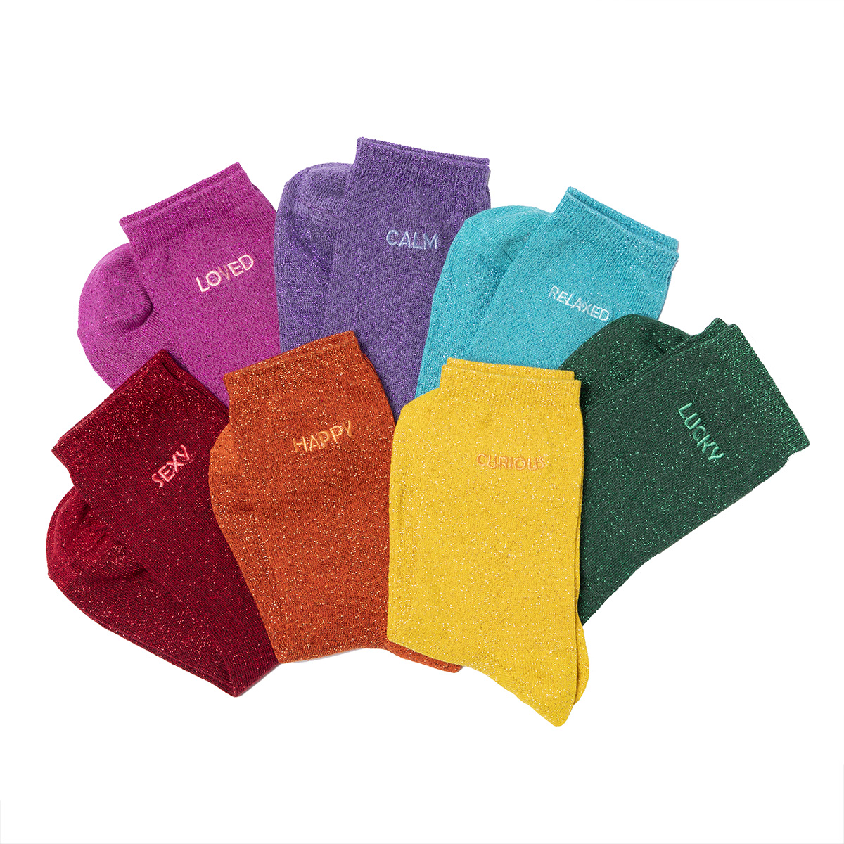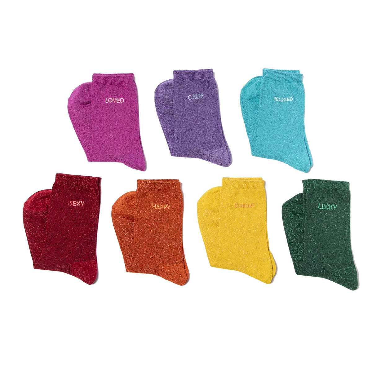 SPECIAL DESIGN: Moods Up! Collection is designed to reflect your mood on your style. We use colors as a powerful communication tool to influence your mood and style because we bring you the colors of being 'Comfortable, Happy, Curious, Relaxed, Sexy, and Lucky' for each day. These women socks give a sense of happiness and elegance. They color your style by offering a modern base to your wardrobe.