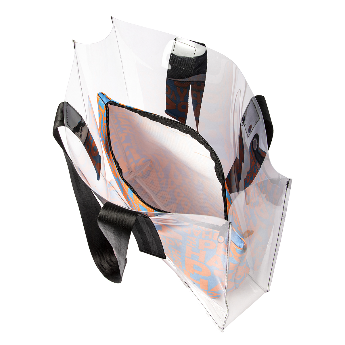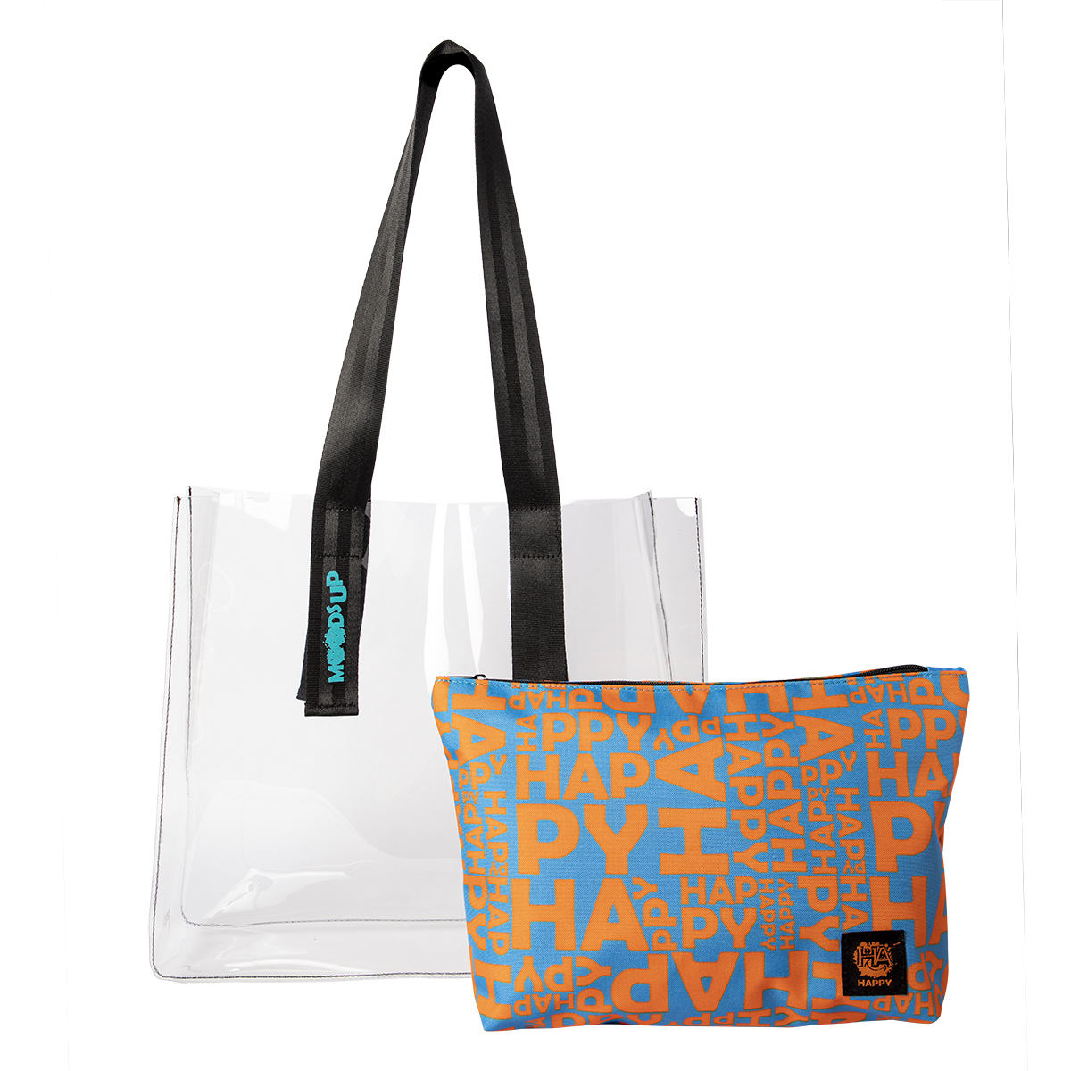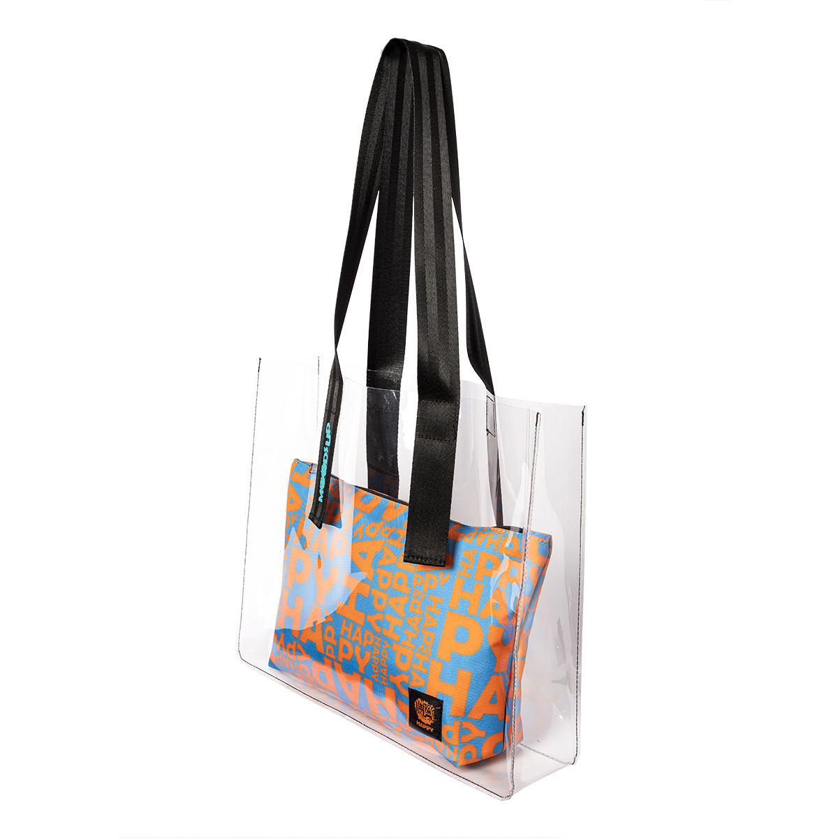BIGGDESIGN CLEAR BAG: Biggdesign Moods Up beach tote is made from 100% waterproof thermoplastic polyurethane. It has desirable properties of abrasion-tear resistance and high impact strength so you can be sure of suffering no damage. You can easily clean with a damp cloth. This clear tote bag has also a removable clutch purse inside to keep your tablet, phone, jewelry separately and safer.