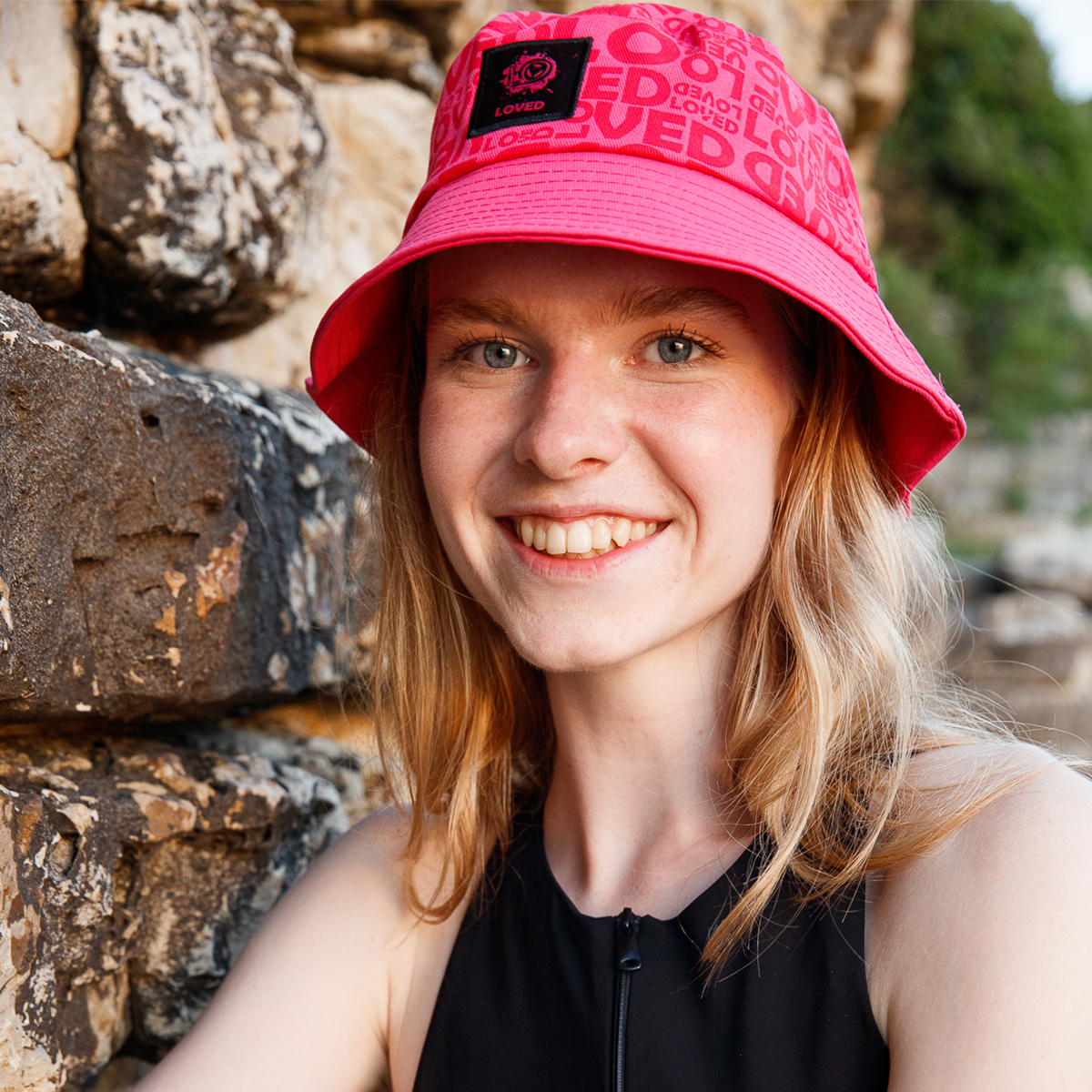This bucket hat's most defining characteristic is the brand's Moods Up logo on the front for a strong statement for the fashion conscience. Pink color makes this bucket hat a stylish summer and spring-time accessory to blend nicely with all your warm-weather outfits, from linen pants and floral summer dresses to even denim shorts.