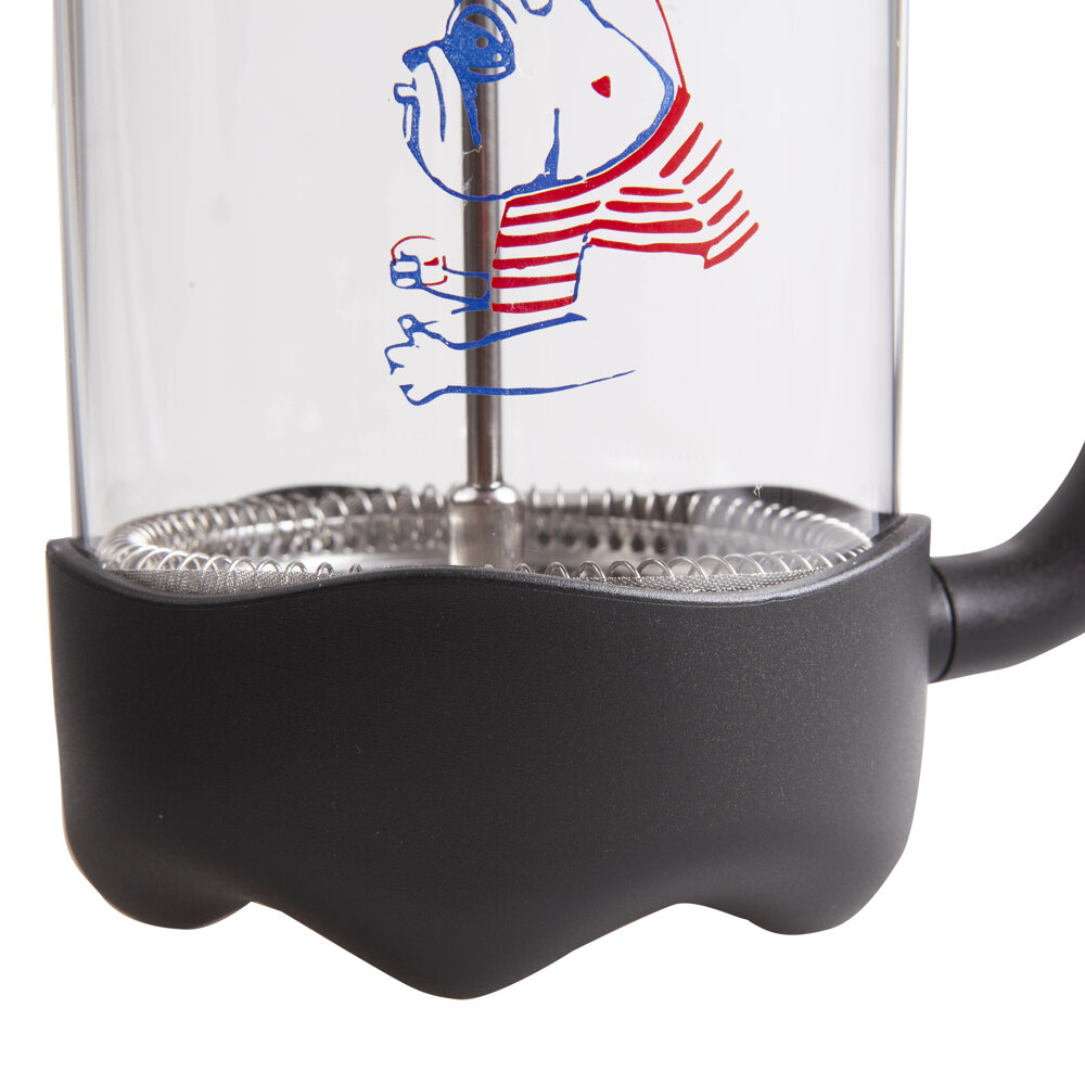 HIGH QUALITY FRENCH PRESS: The body of the Biggdesign french press is made of durable plastic that protects the glass beaker from cracks and scratches, as well as protecting surfaces from heat damage. The plunger and the filters are made of food grade stainless steel to add strength and durability while in use
