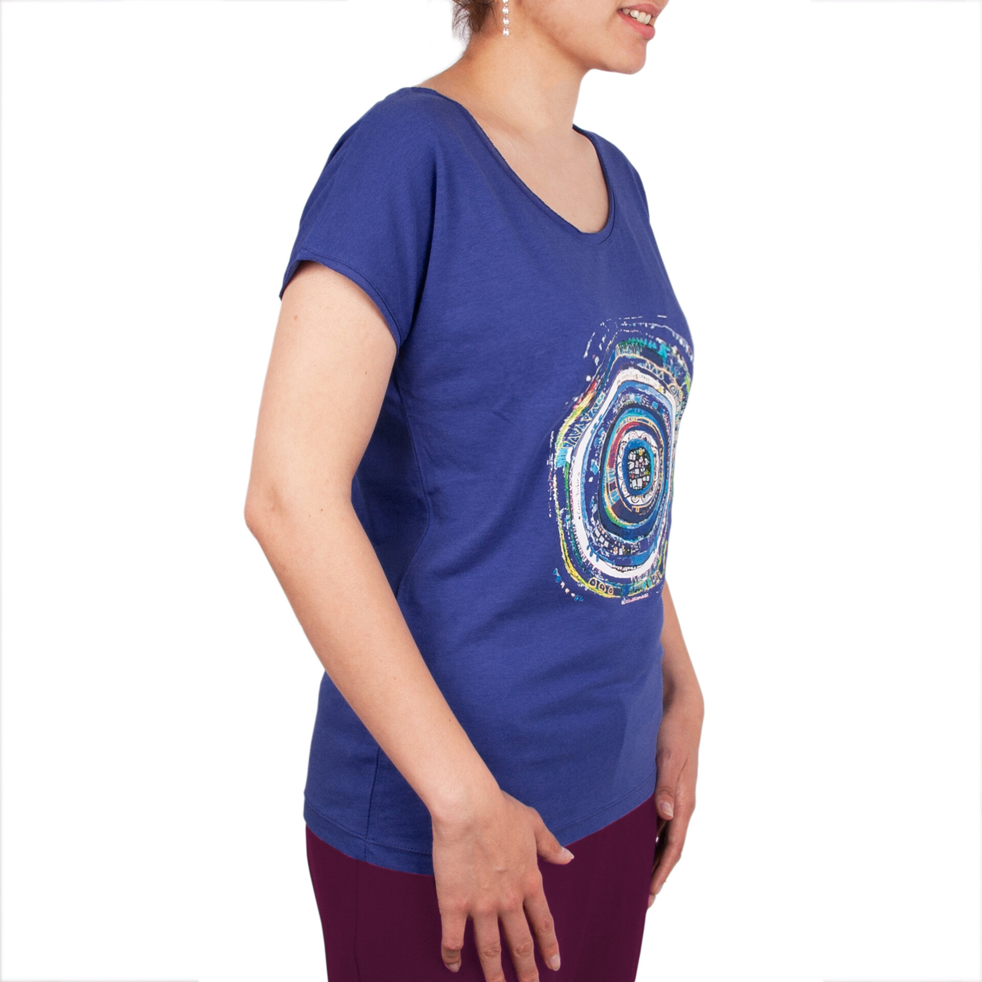 With Biggdesign Nazar the cotton t-shirt you feel stylish and comfortable.. Designed by the painter Canan Berber and inspired by the unique history of Anatolia, the Nazar pattern draws attention with its ethnic motif. . You will feel comfortable when wearing crew collar, short sleeves and soft cotton fabric Biggdesign T-shirt made of 100% cotton. Printing technique is applied to authentic T-shirt so that you will not feel plastic feeling of the printed design. Reverse washing should be done at 30 ° C. It can be ironed with a medium heat iron. DO NOT chemical for cleaning. DO NOT dry-cleaning. Product Dimensions: Small Size: Width: 45cm, Length: 68cm, Medium Size: Width: 47cm, Length: 70cm, Large Size: Width: 49cm. Height: 72 cm, XLarge size: width: 51 cm, height: 74 cm..