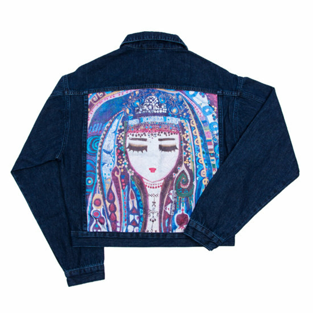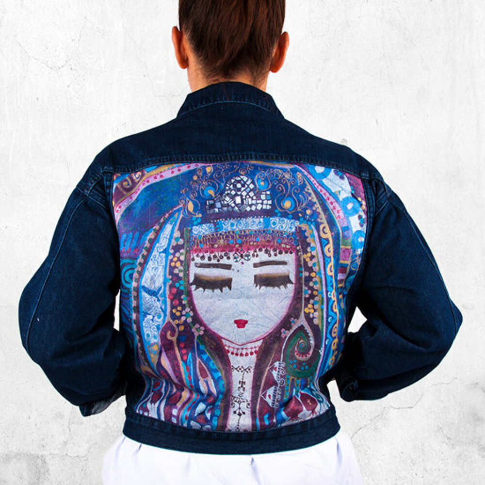 - Denim jacket on which Canan Berber's "Blue Water" pattern is applied.
