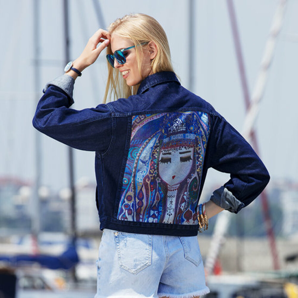 The Denim jacket, which is especially the savior of the spring months, is one of the favorite choices of the season with its ideal for cool, warm weather and of course summer nights and completing the clothes perfectly.Thinking of your comfort and your style, Denim jacket is more spacious and breaks the classic patterns. With its bold form, Denim takes your style to a different dimension. Biggdesign, which combines navy blue denim jackets with artistic designs, enables you to have an original denim jacket by using the drawings of the works of world famous painter Canan Berber on the back of their designs. As soon as you turn around, you can create a pleasant surprise around you with the artistic detail on the back of the navy blue denim jacket and show everyone how unique you are.