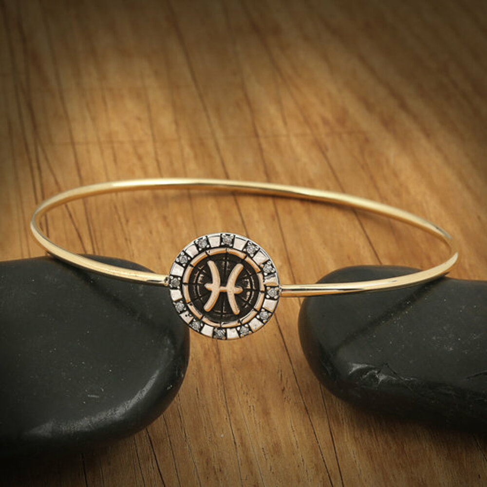 The special jewelry that strengthens your bond with your horoscope is an ideal option for you to give to your wife, your mother, a close friend, sister or colleague. It is a gift that everyone will love and enjoy wearing. The bangle bracelet made of 925 sterling silver in combination with a brass coating.