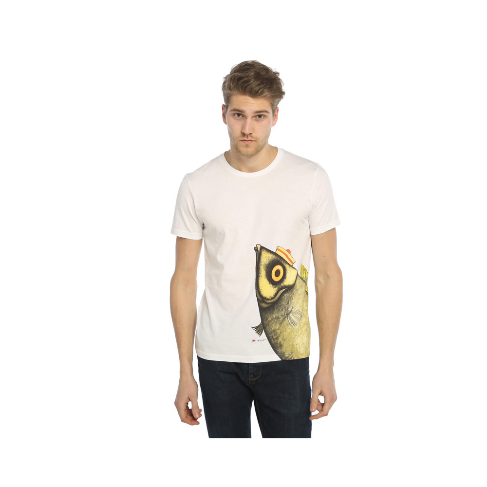 BIGGDESIGN WHITE MEN'S T-SHIRT: Biggdesign Pistachio Men's T-Shirt is made of 50% cotton and 50% modal fabric. It is healthy with its special soft fabric texture and breathability that allows air flow. Regular standard fit pattern has a modern and stylish cut. The special design pattern is applied with the printing technique and is completely integrated with the t-shirt. It does not give the feeling of plastic print when touched, it has a soft texture. It tells about wealth, abundance, good luck and healing with the fish figure. This collection, which emerged with the ever-existing relationship between art and fashion, allows you to feel the theme of abundance closest to you and emphasize your style comfortably in its colorful form. COMFORTABLE USE IN EVERY SEASON: This specially designed t-shirt is made with the most comfortable and functional design. It is compatible with your body, soft enough to feel free in, and at the same time light and stylish. It brings the comfort that suits hot weather to your clothing. It makes your style memorable with its neat cut, sewing quality and design. It goes great with sneakers, jeans and a hoodie sweatshirt. WASHING INSTRUCTIONS: Gentle and reverse wash at 86°F (30°C). It can be ironed with an iron at medium temperature. Dry cleaning is not possible. Should not be dried with a dryer