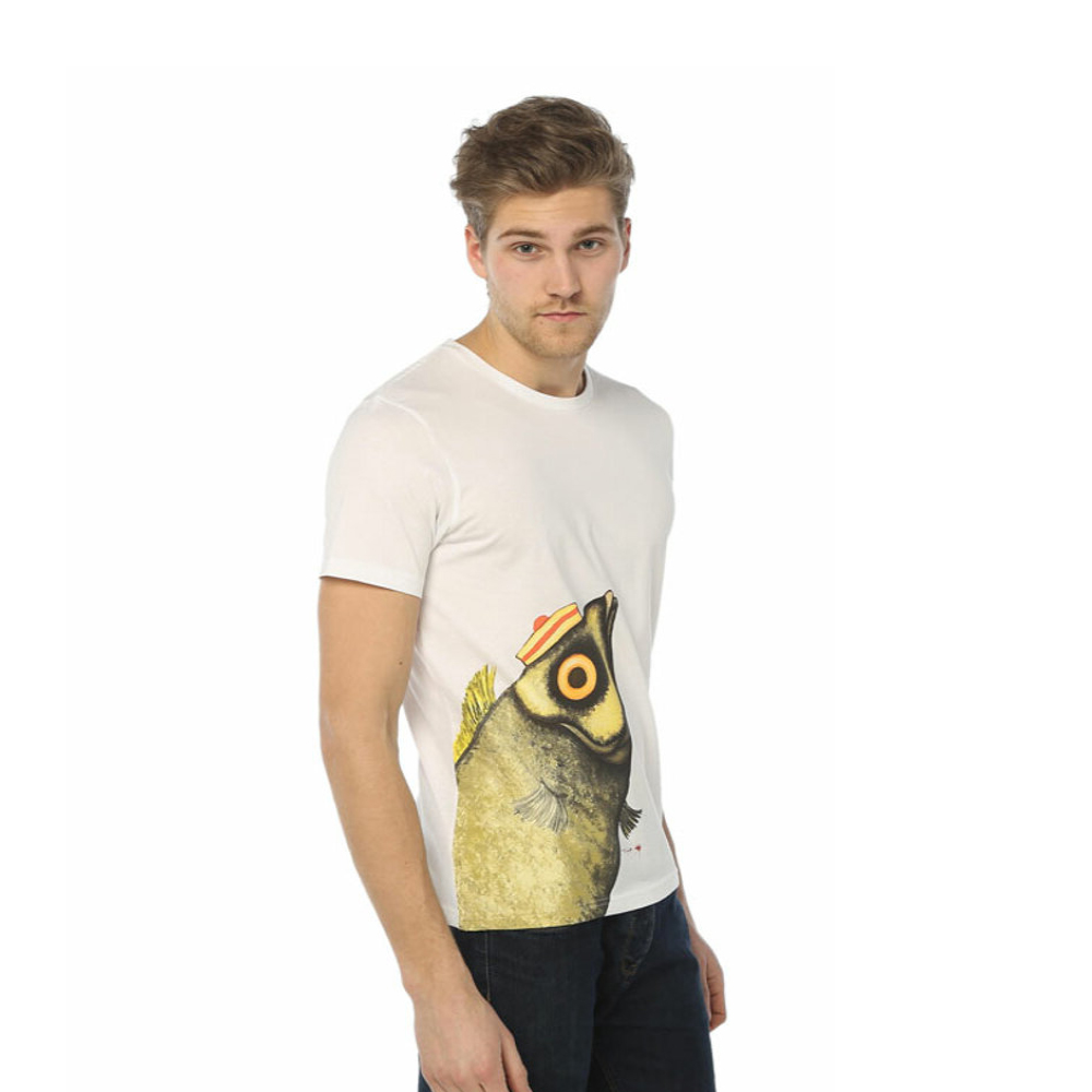 SPECIAL DESIGN MEN'S T-SHIRT: The theme of Pistachio, a modern style work by the painter Güçlü Kadir Yılmaz, is the fish figure, which is accepted as the universal symbol of abundance, richness, abundance, good luck and healing. This collection, which emerged from the ever-present relationship between art and fashion, allows you to feel the theme of abundance close to you and emphasize your style comfortably in its colorful form.