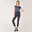 T-shirt with short sleeves and printed front design is stylish and comfortable.
