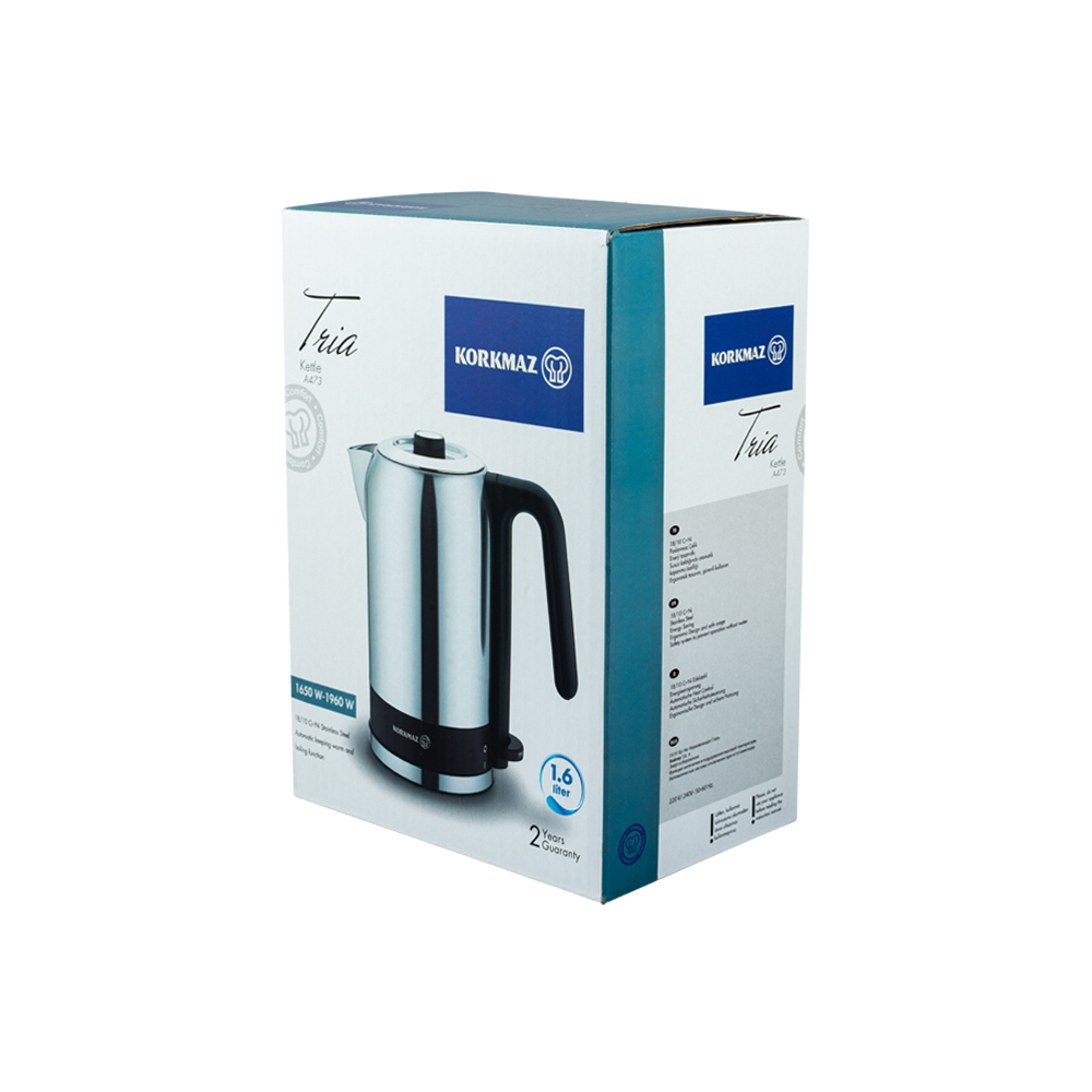 The electric kettle, Korkmaz Tria, which is one of the most frequently used electronic devices in the kitchens, is in your home with maximum efficiency. The electric teapot, which you will love to use safely and practically, stands out with its energy saving. You'll have the best comfort while serving guests as the electric tea kettle with temperature control will allow you to make tea or coffee for as much people as you want with it's 1.6 lt capacity. You'll also be able to use electric kettle for years thanks to it's stainless steel durable structure and will save your time and energy since it shuts off itself when it's out of water. Korkmaz Tria electric tea kettle will be your most functional company in the kitchen.