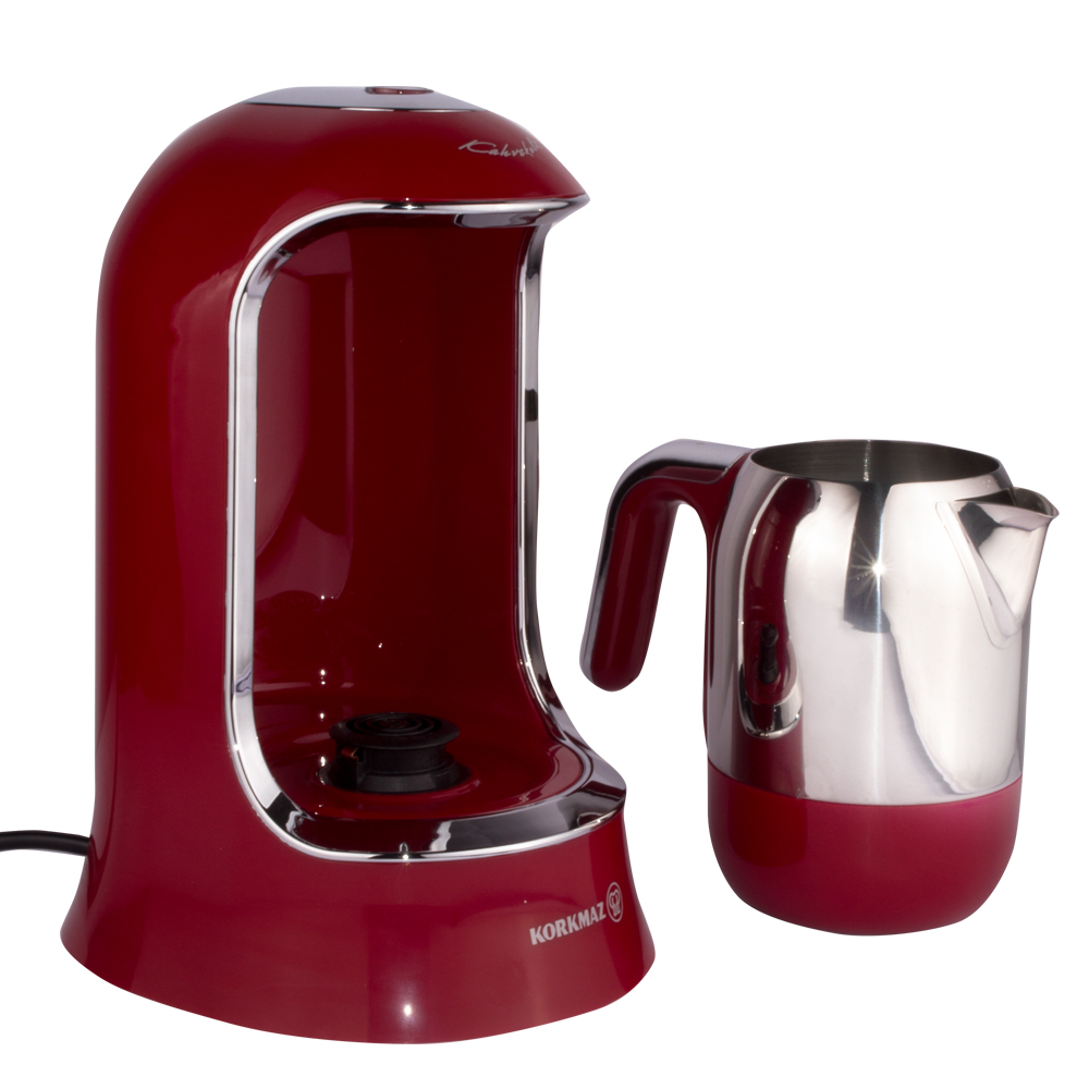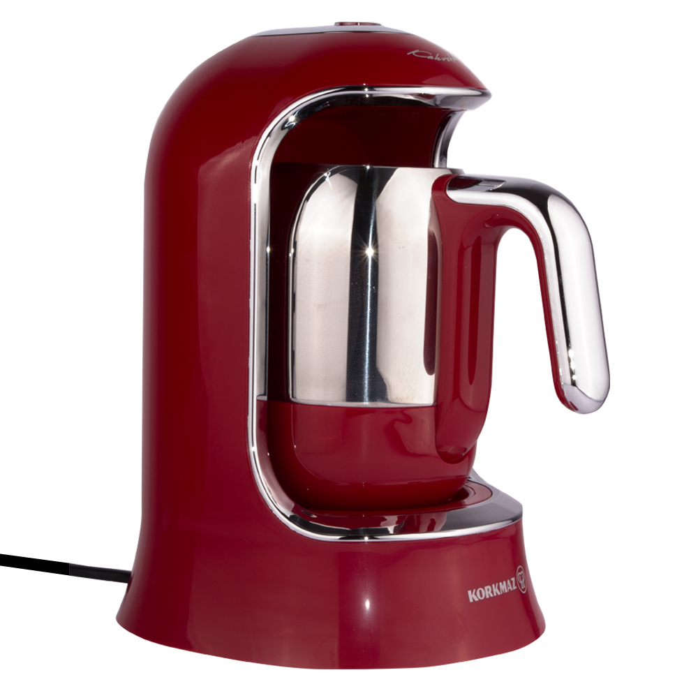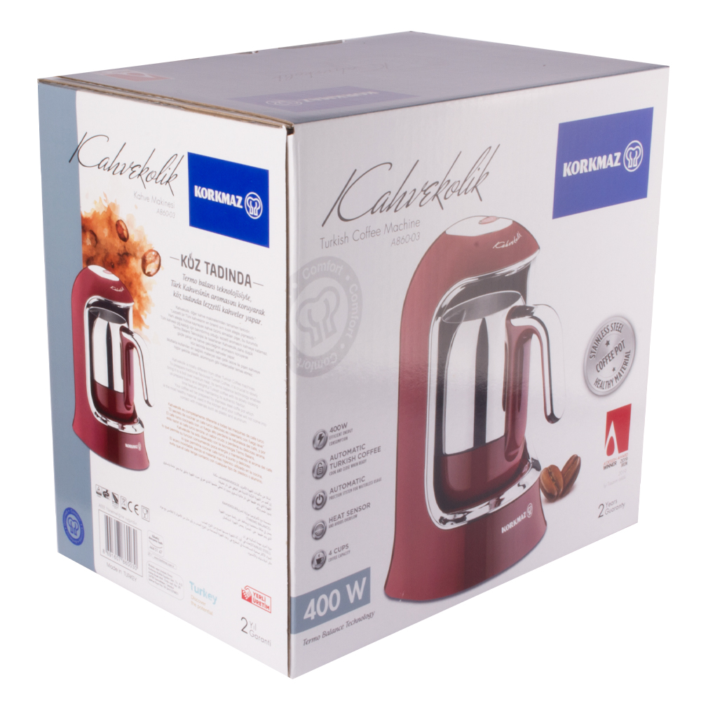 After a busy day, a perfectly brewed cup of Turkish coffee made with the Korkmaz Kahvekolik Turkish coffee maker is enough to take away all your fatigue. Specially designed for Turkish coffee, this coffee maker offers a unique taste and presentation that cannot be matched. If you like your coffee frothy, the Turkish coffee maker evenly distributes heat, creating a delightful texture. With its overflow prevention sensor, the machine ensures maximum safety by detecting temperature and automatically activating a protection system when it runs dry. The durable stainless steel cezve (coffee pot) with a spacious reservoir allows you to brew 4 cups of Turkish coffee at the same time, making it perfect for enjoying coffee moments with your friends. The automatic coffee-making setting saves time and energy, as the Turkish coffee maker automatically shuts off when your delicious coffee is ready. The elegant design of the Korkmaz Turkish coffee maker adds sophistication to your kitchen. Its user-friendly design, including the ergonomic handle of the cezve and cordless operation, makes your life easier.