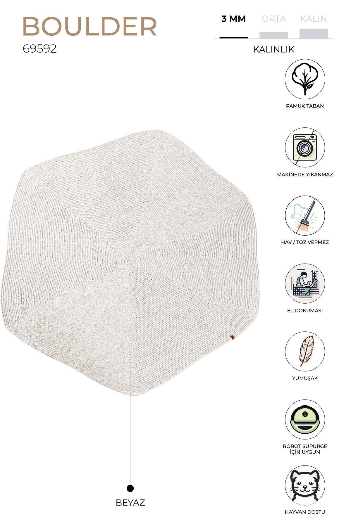 Koza Carpet Boulder Hand Knitted Hexagon White Cotton Washable Carpet Rug Balcony Terrace Living Room Corridor Carpet Wicker Carpet 69592 160 x 160