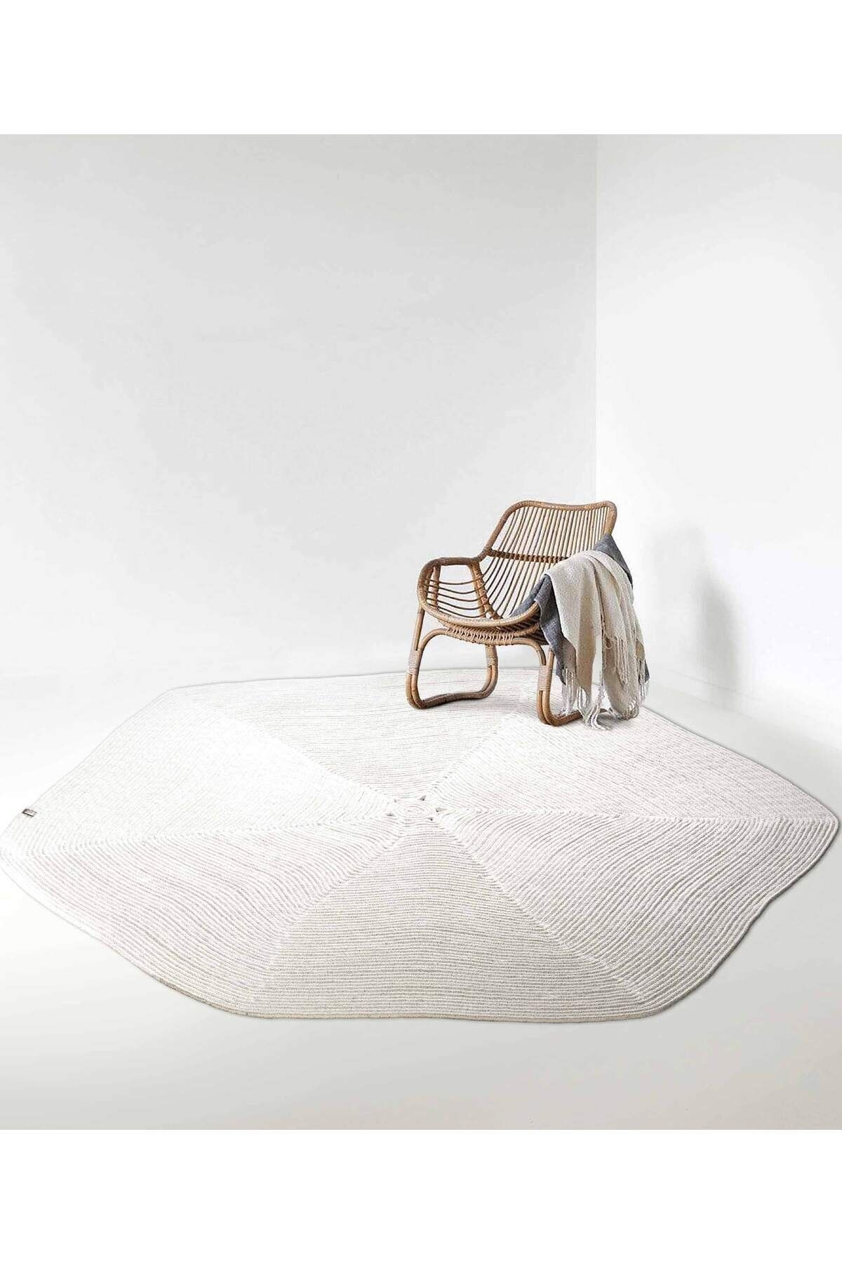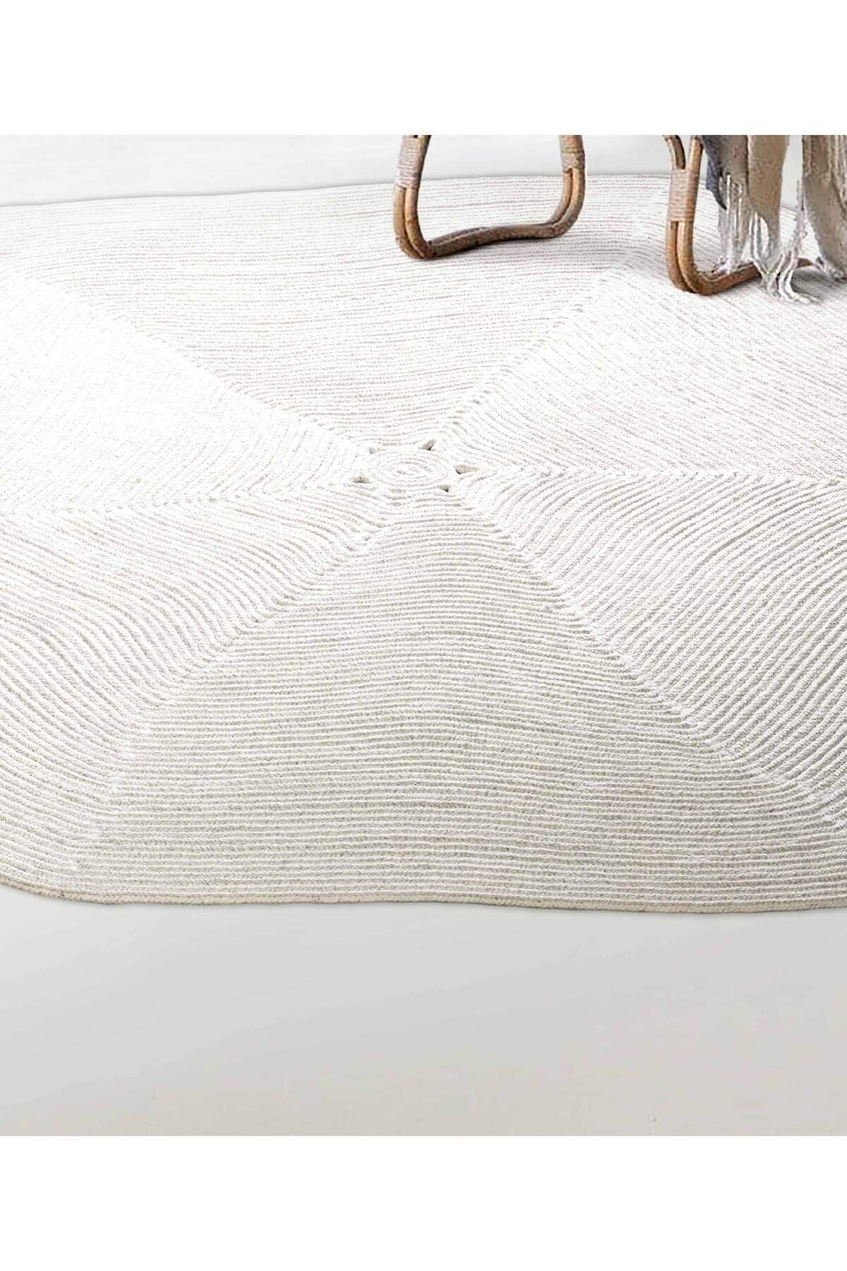 Koza Carpet Boulder Hand Knitted Hexagon White Cotton Washable Carpet Rug Balcony Terrace Living Room Corridor Carpet Wicker Carpet 69592 200 x 200