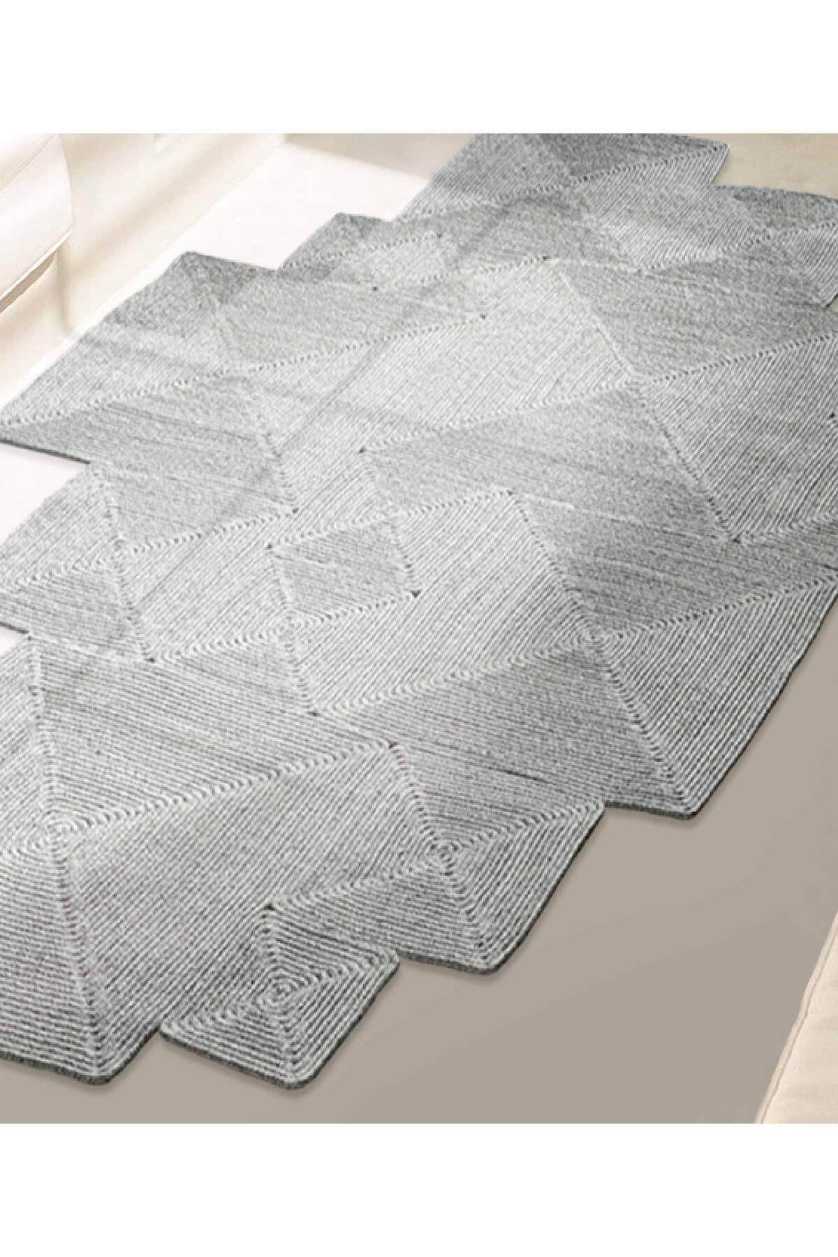 Koza Carpet Boulder Hand Knitted Square Gray Cotton Washable Carpet Rug Balcony Terrace Living Room Corridor Carpet Wicker Carpet 69590 120 x 180