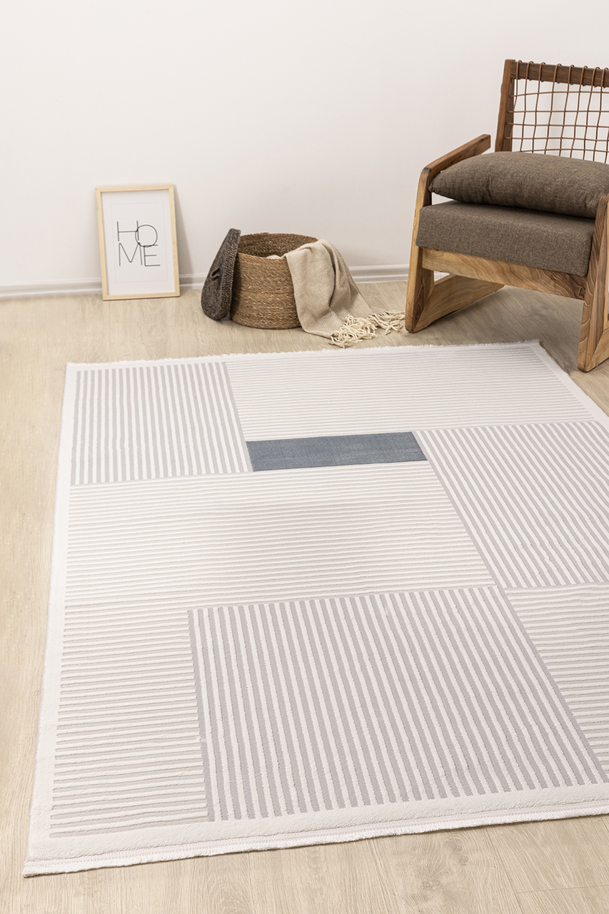 Farahan Gray Blue Geometric Dust-Free Living Room Corridor Balcony Terrace Garden Sitting Room Carpet A0859A High quality polypropylene and polyester content Farahan carpet offers a soft and comfortable feeling under your feet. Farahan Collection has been carefully designed with the strong harmony of cream-cinnamon colors and its calm appearance that complements all kinds of decor. This collection, which is also eye-catching in terms of aesthetics, is designed to add an elegant touch to your living spaces. Reflecting a minimal style with its calm linear modern plain weave, Farahan Collection will create an elegant and stylish ambiance with its functional structure compatible with all decorations. Ideal for those looking for decoration, comfort and simple elegance in living spaces. It is suitable for use in living rooms, living rooms and bedrooms indoors. This carpet brings dynamism and freshness to your room while creating a bright accent on the floor. With its stylish design and high quality materials, it provides both a visually pleasing appearance and offers long-lasting use. Beautify your space with its minimalist and modern look by creating an elegant and stylish environment. Enrich your decor, comfort and ambiance with Farahan, designed to add style to your living spaces. Farahan Collection is a perfect option for long-term use, offering long-lasting and easy maintenance thanks to its durable structure. It does not cause dust and fluff. It can be washed in carpet washing service. It is not recommended to use bleach and heavy chemicals. A damp cloth and carpet cleaner can be used for stains. It is suitable for robot vacuum cleaner use. Note: Actual colors may vary depending on lighting and monitor settings.