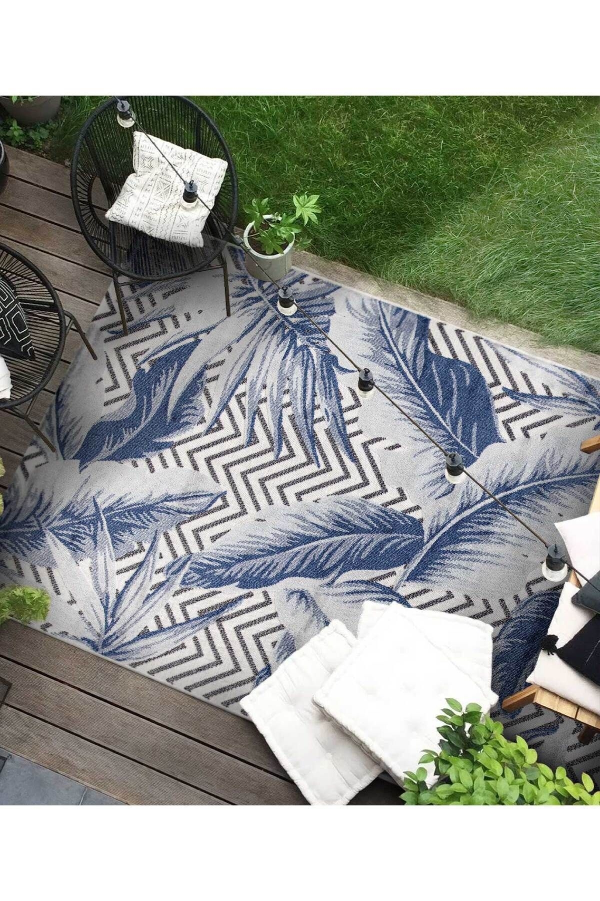 Koza Garden blue outdoor rug is produced with Koza Halı's high-tech machines in a quality suitable for use in outdoor areas. It is resistant to weather conditions. It is resistant to mold, water and UV rays. Koza Garden blue rug, where the calm and serene energy of the blue color comes together with the striking effect of the patterns, meets you with Koza Halı quality. Areas of use: You can use it as you wish in your outdoor areas, sitting areas, under your dining tables. Washing Instructions: Easy to clean. It is recommended to clean it regularly with a vacuum cleaner. There may be up to 5% difference in the dimensions of the rugs due to the variety of production and yarn used. Note: Actual colors may differ depending on lighting and monitor settings.
