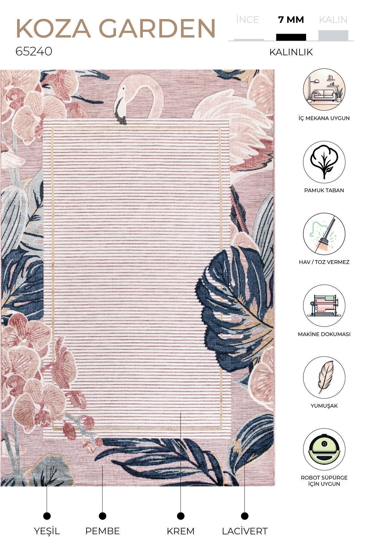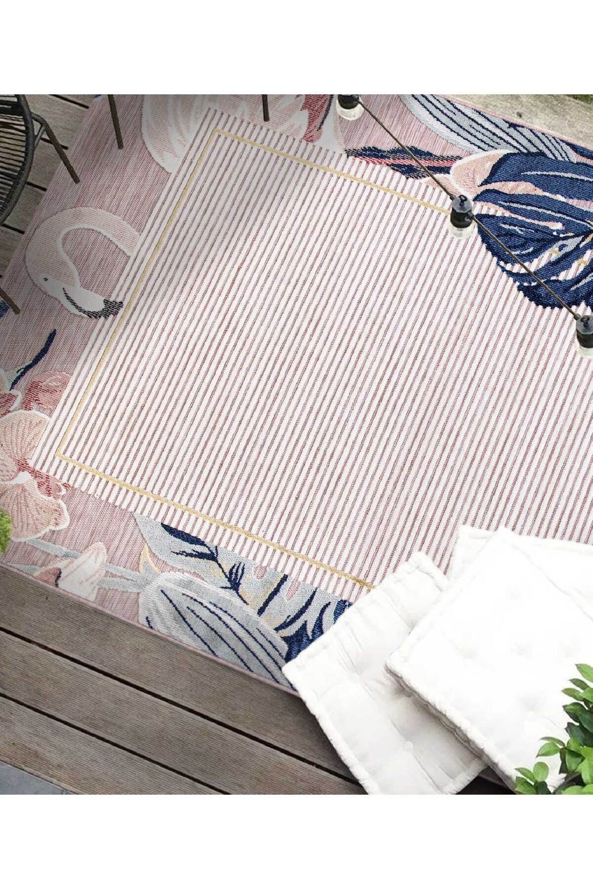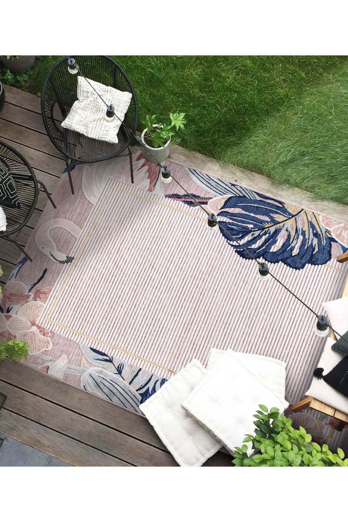 Koza Garden pink outdoor rug is produced with Koza Halı's high-tech machines in a quality suitable for outdoor use. It is resistant to weather conditions. It is resistant to mold, water and UV rays. The soft and luxurious tones of pink and its colors and patterns are designed to add elegance to spaces. Areas of use: You can use it as you wish in your outdoor areas, seating areas, and under your dining tables. Washing Instructions: Easy to clean. It is recommended to clean it regularly with a vacuum cleaner. There may be up to 5% difference in the dimensions of carpets due to the variety of production and yarn used. Note: Actual colors may differ depending on lighting and monitor settings.