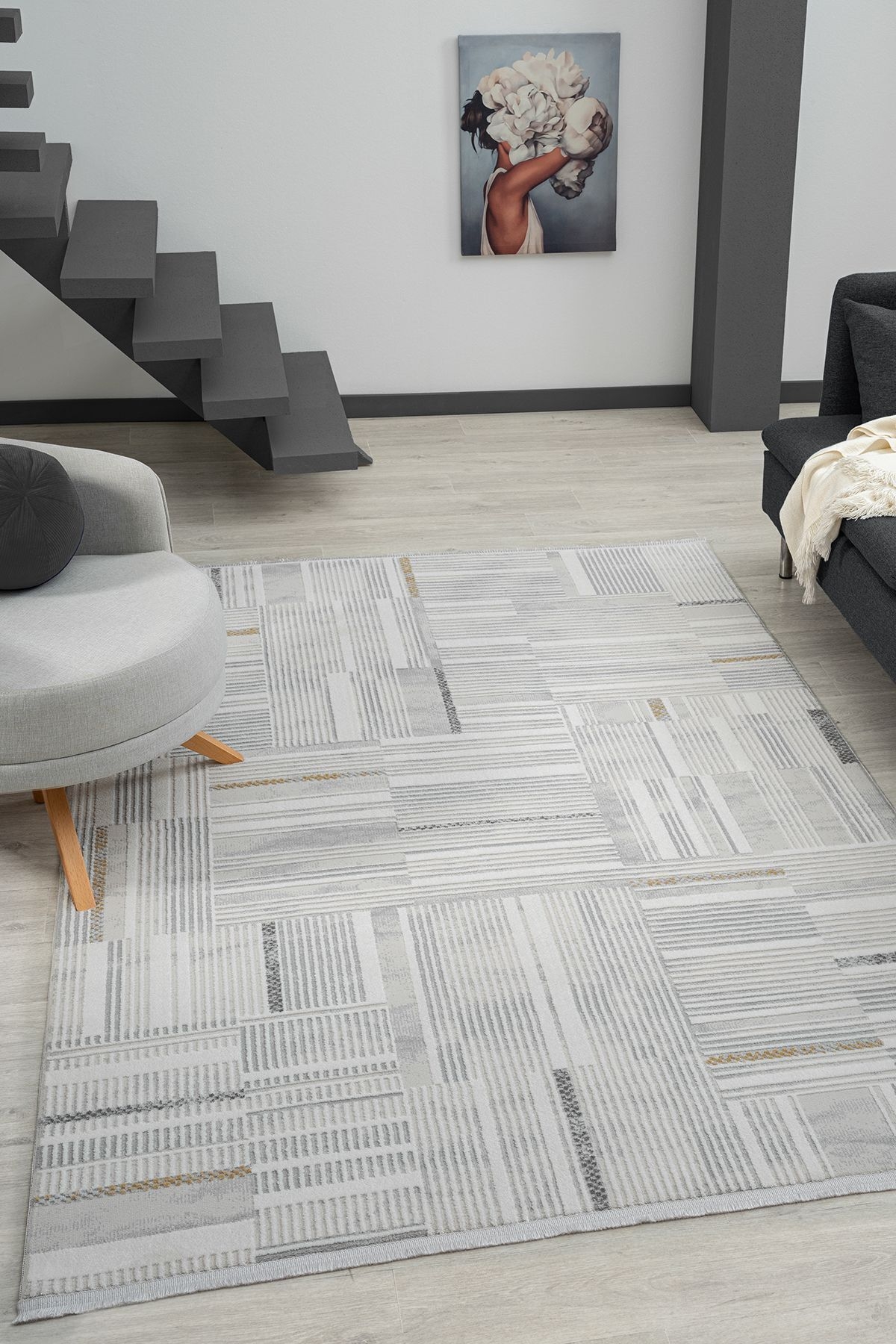 Koza Carpet Koza Hayad Helsinki A0929F Gray Yellow Living Room Sitting Room Bedroom Corridor Machine Carpet 160x230