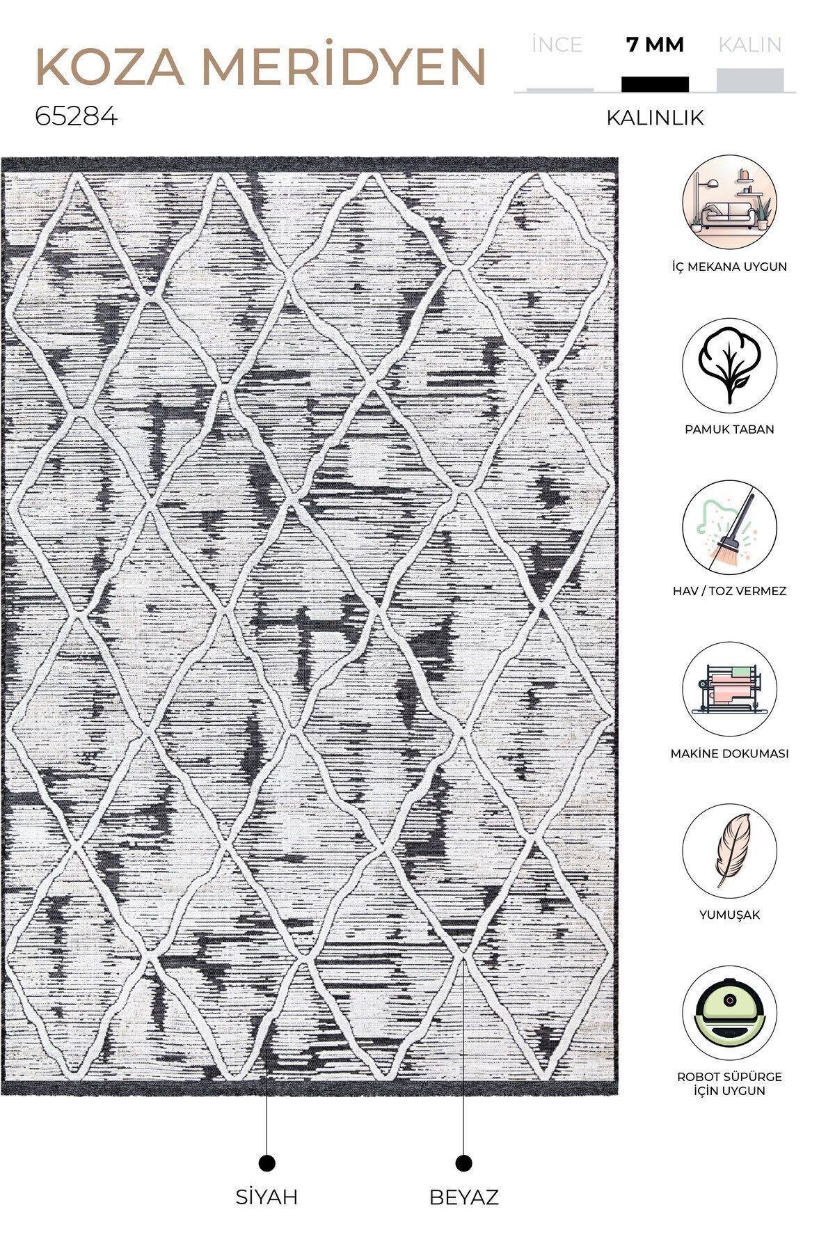 Koza Carpet Koza Meridyen Black Carpet Rug Balcony Terrace Garden Living Room Corridor Machine Carpet 65284 98 x 200