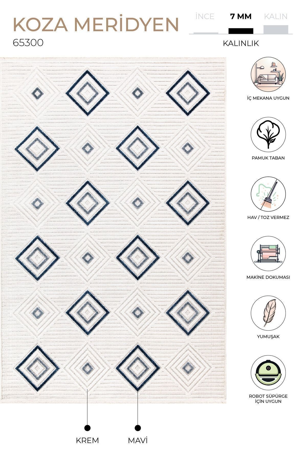 Koza Carpet Koza Meridyen Blue Carpet Rug Balcony Terrace Garden Living Room Corridor Machine Carpet 65300 98 x 200