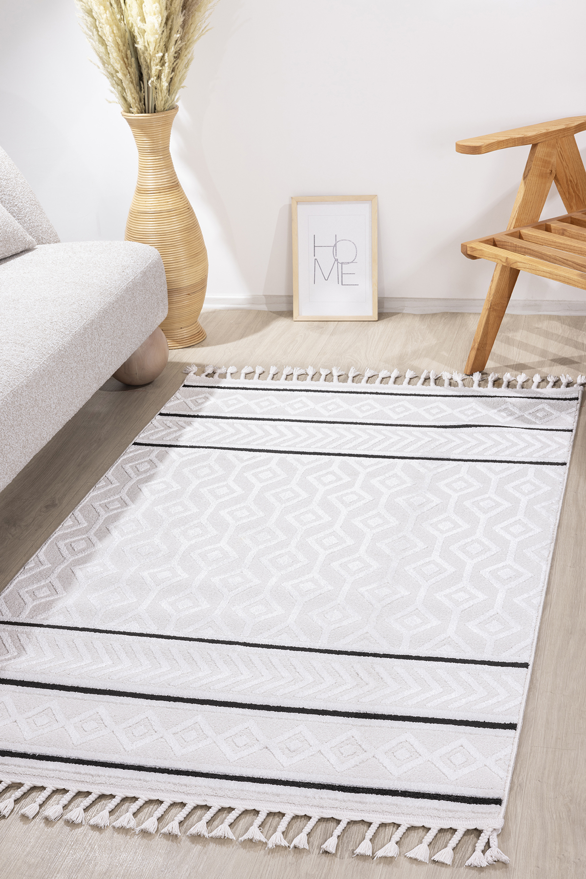 Koza Carpet Malta Scandinavian Cream Black Carpet Living Room Bedroom Hallway Kitchen Machine Rug 33405A 100 x 200