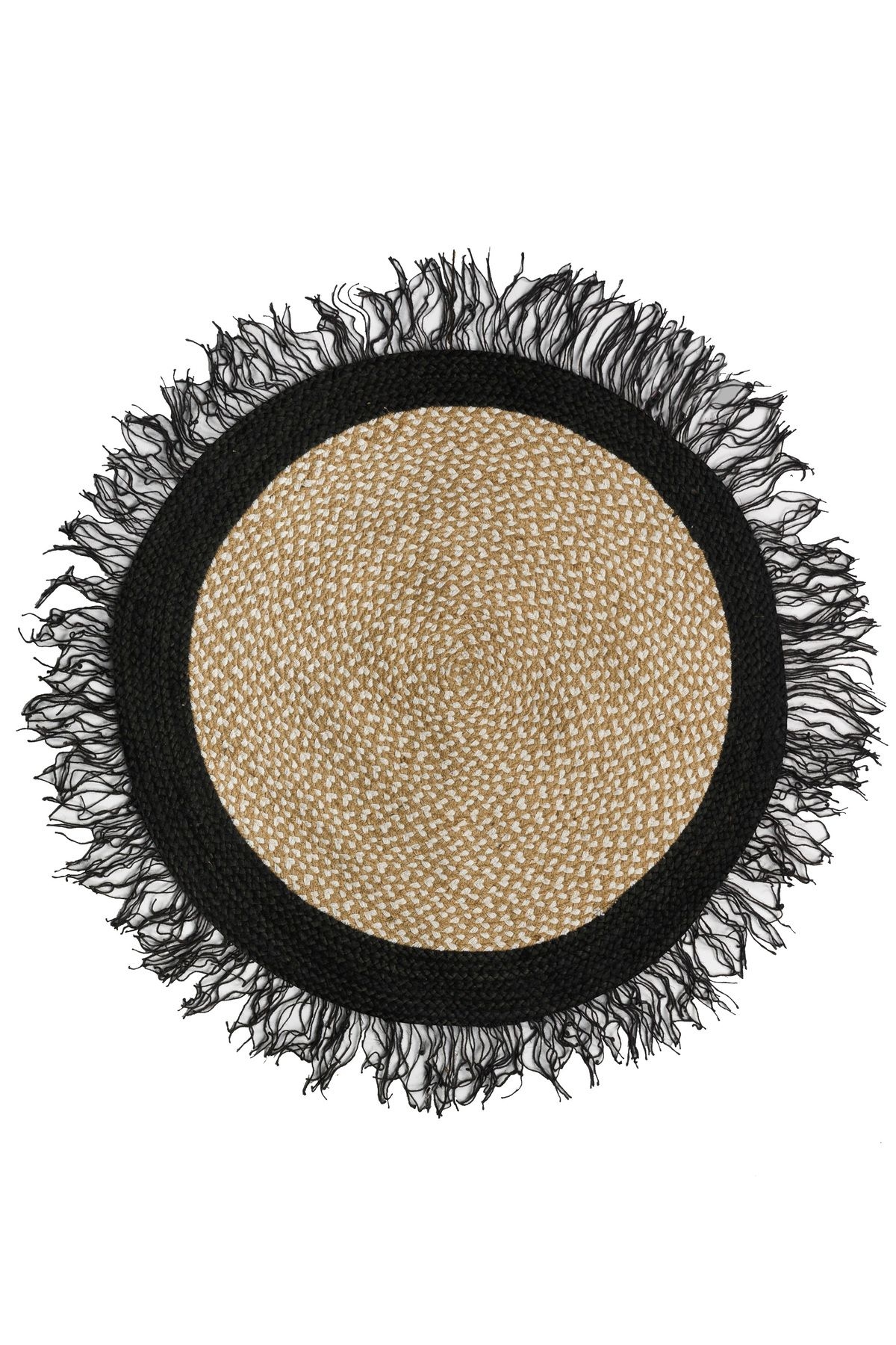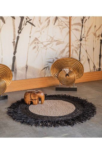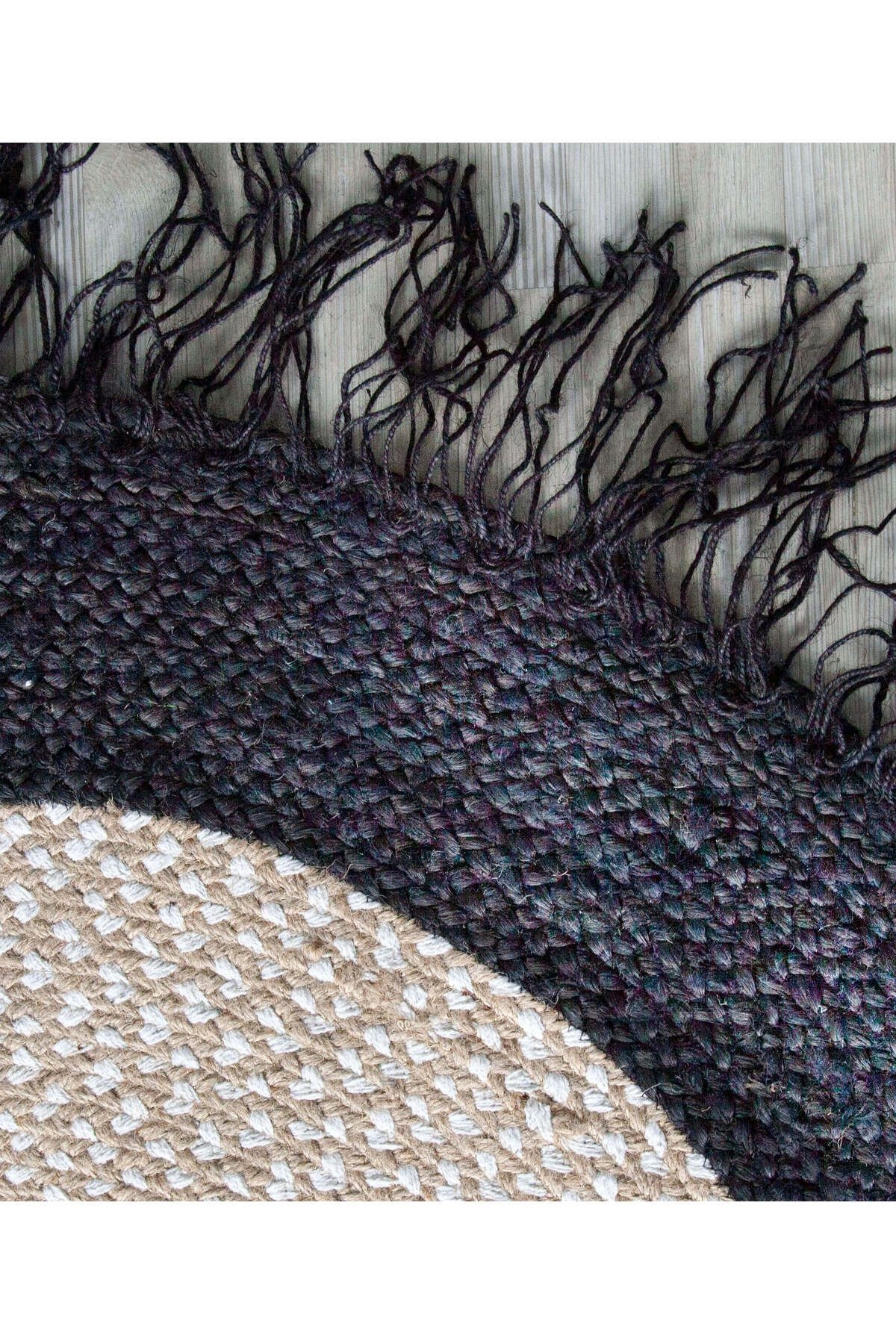 NATURA JUTE is produced in India from natural jute fibers on a handloom. Jute rugs are hand-woven, special rugs made of natural yarn that suit almost every style of decoration. They are recyclable, do not harm the ecological balance and are environmentally friendly. They are durable and are not affected by time, trends and trend wear. Its circular form adds movement to the space, with a natural jute colored circle in the middle and a thick black jute ring and fringes around it. Available in size options such as 150 cm, 120 cm and 90 cm. Natura Rug has a minimal, modern plain weave design that complements every kind of decor. It is suitable for both indoor and outdoor use, is resistant to UV rays, is resistant to moisture and mold, and is easy to clean and maintain. Ideal for those looking for decoration, comfort and elegance in living spaces. Perfect for outdoor spaces, gardens and any area where you need durable and stylish floor coverings. The rug perfectly fits into any environment with its calm and natural tone. Create an elegant and stylish environment and beautify your space with its minimalist and modern look. Due to the natural state of plants, color differences, color transitions, stains at some points and various differences in the body of the plant are reflected in the product as well. Again, there may be very small plus/minus differences in the measurements of handmade products. It should be wiped with a damp cloth. Note: Actual colors may differ depending on lighting and monitor settings.