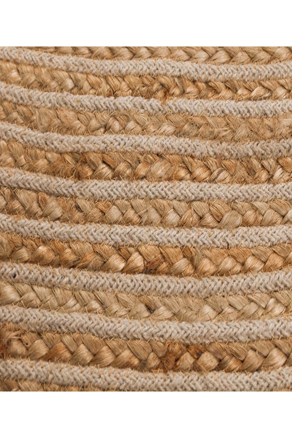NATURA JUTE is produced in India from natural jute fibers on a handloom. Jute rugs are hand-woven, special rugs made of natural yarn that suit almost every style of decoration. They are recyclable, do not harm the ecological balance and are environmentally friendly. They are durable and are not affected by time, trends and trend wear. Its circular form adds movement to the space. It carries the simplicity of natural textures to the environment with natural jute and beige rope weave details. Available in size options such as 150 cm, 120 cm and 90 cm. Natura Rug has a minimal, modern flat-weave design that complements every kind of decor. It is suitable for both indoor and outdoor use, is resistant to UV rays, is resistant to moisture and mold, and is easy to clean and maintain. Ideal for those looking for decoration, comfort and elegance in living spaces. It is perfect for outdoor spaces, gardens and any area where you need durable and stylish floor coverings. The rug fits perfectly into every environment with its calm and natural tone. Create an elegant and stylish environment and beautify your space with its minimalist and modern look. Due to the natural state of plants, some points of color differences, color transitions, spots and various differences in the body of the plant are reflected in the product as they are. Again, in the measurement of handmade products, there may inevitably be very small plus/minus differences. It should be wiped with a damp cloth. Note: Actual colors may vary depending on lighting and monitor settings.