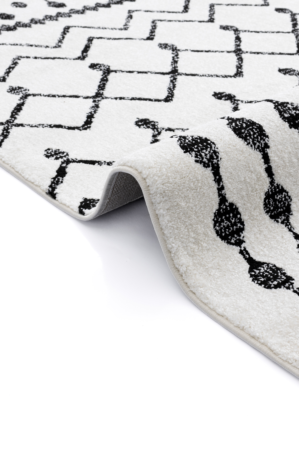 Nott White Carpet 59832 We are here with the Nott Collection, a versatile complement to your living spaces. Nott carpet with 8-10 mm pile height and high quality polyester content has a cotton base coating that increases strength. Nott Collection is carefully designed with vibrant color options that complement all kinds of decor and geometric patterns inspired by traditional carpet motifs. Nott, which is stylish with its patterns and colors and marginal with its original size design; is produced with its elegant details and high-level weaving technique. It has a rich product range with different size and color options. Ideal for those looking for decoration, comfort and elegance in living spaces. It is suitable for use in living rooms, living rooms and bedrooms in interiors. The carpet; It suits every environment perfectly with its striking and perfect harmony of black and white. This carpet brings dynamism and freshness to your room while also creating a striking accent on the floor. With its stylish design and high quality materials, it provides both a visually pleasing appearance and offers long-lasting use. Beautify your space with its minimalist and modern look by creating an elegant and stylish environment. Enrich your decor, comfort and ambiance with Nott, designed to add style to your living spaces. Note: Actual colors may vary depending on lighting and monitor settings.