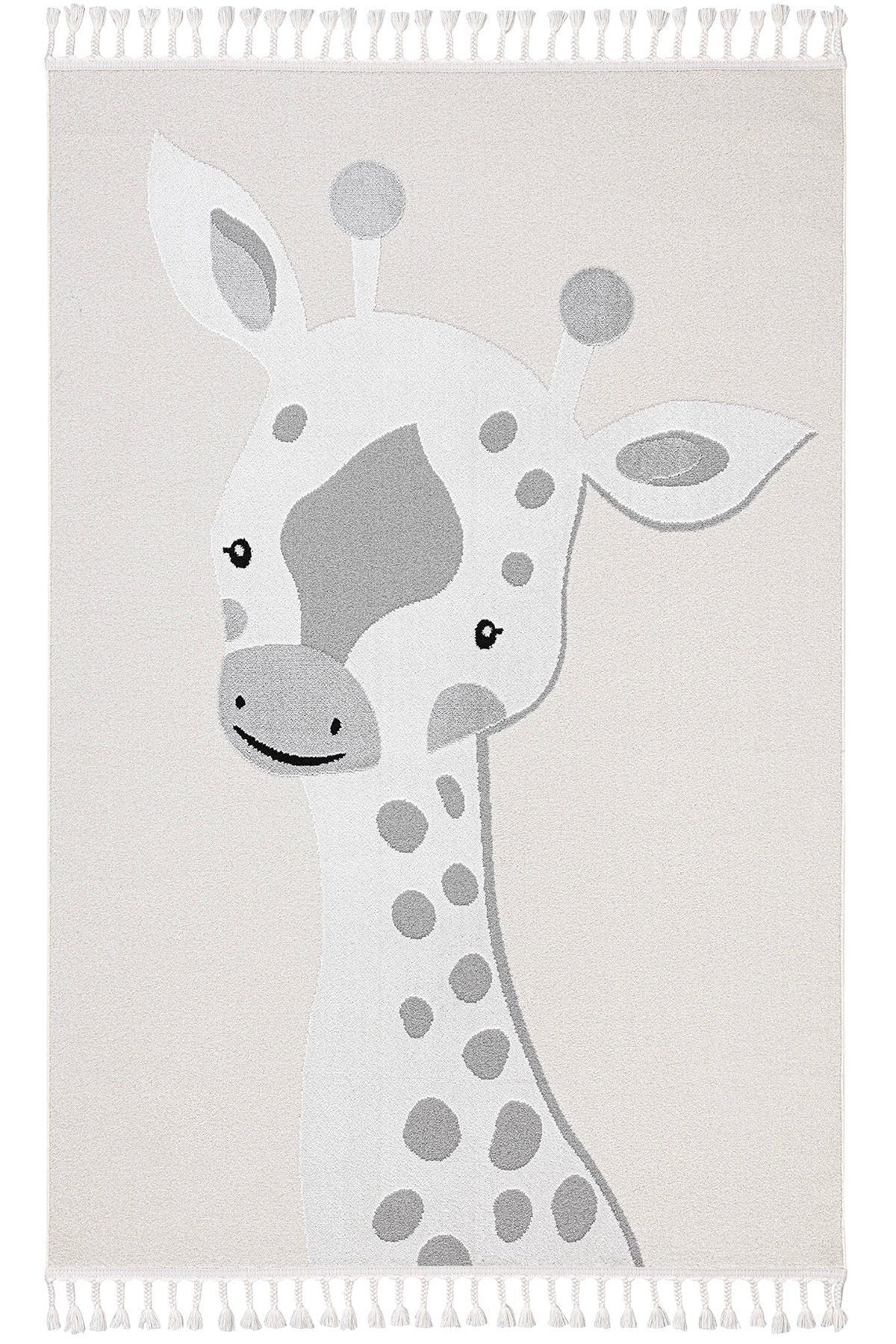 SPARKLE CHILDREN'S RUG Sparkle Cream Gray Giraffe Figured Animal Figured Children's Room Rug Where Imagination Takes the Stage! Ignite your child's imagination with the Sparkle Cream Gray Giraffe Figured Animal Figured Children's Room Rug, a world of wonders woven in each loop. This rug, measuring 133x190 cm, brings the magic of the wild to children's rooms, kindergartens and playrooms. Main Features: Decorated with fascinating figures, the rug creates a fun atmosphere that stimulates creativity and curiosity. The soothing combination of cream and gray adapts perfectly to a variety of interior spaces, offering a neutral backdrop for lively young minds. Measuring 133x190 cm, this rug provides children with ample space to explore, learn and create their own adventures. Made of high-quality polyester, this product offers softness and durability to withstand the excitement of play. Animal figures encourage learning, storytelling and interaction through imaginative play. Soft and gentle on little feet, this rug provides a comfortable and safe space for children to play, learn and bond. Whether in a nursery, preschool or playroom, this rug transforms any space into an engaging environment for children. The Sparkle Cream Gray Giraffe Kids Room Rug is not just a decorative piece; it is a gateway to discovery, creativity and growth. Note: Product color may vary depending on lighting settings.